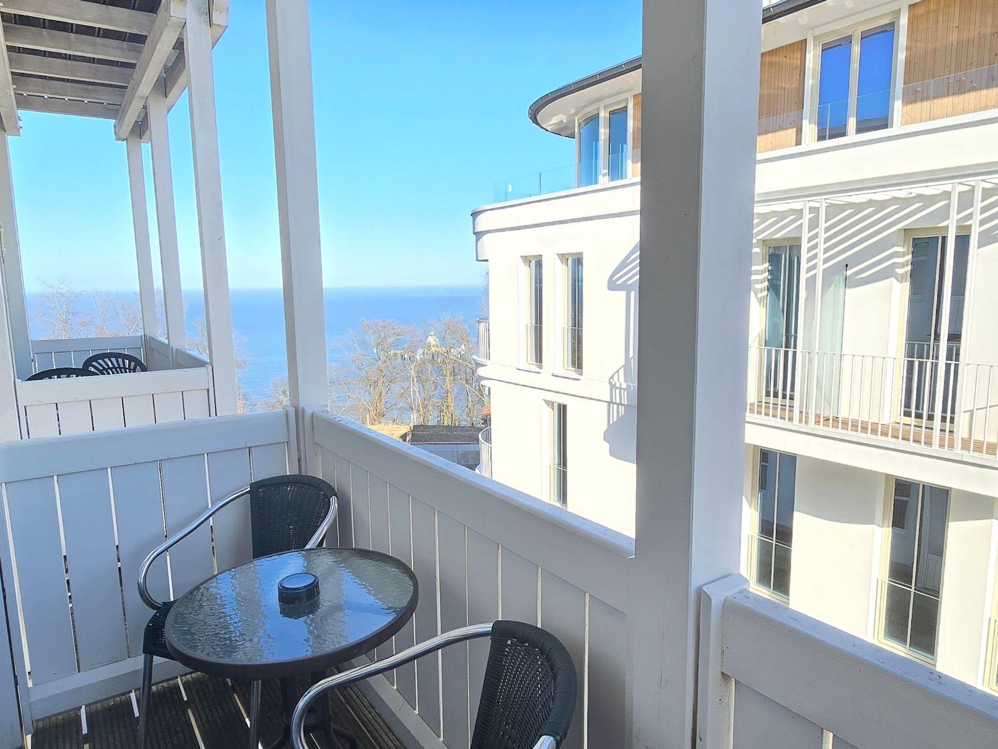 Modernes Studio mit Balkon und seitlichem Ostseeblick in Sellin, nur wenige Meter vom Strand entfernt.
