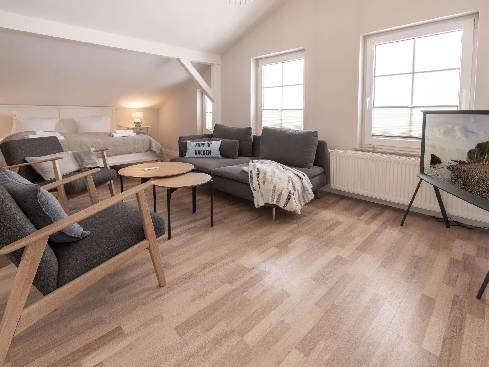 Gemütliche 2-Zimmer-Ferienwohnung Wind & Wolke nahe Selliner Hauptstrand, ideal für bis zu vier Personen.