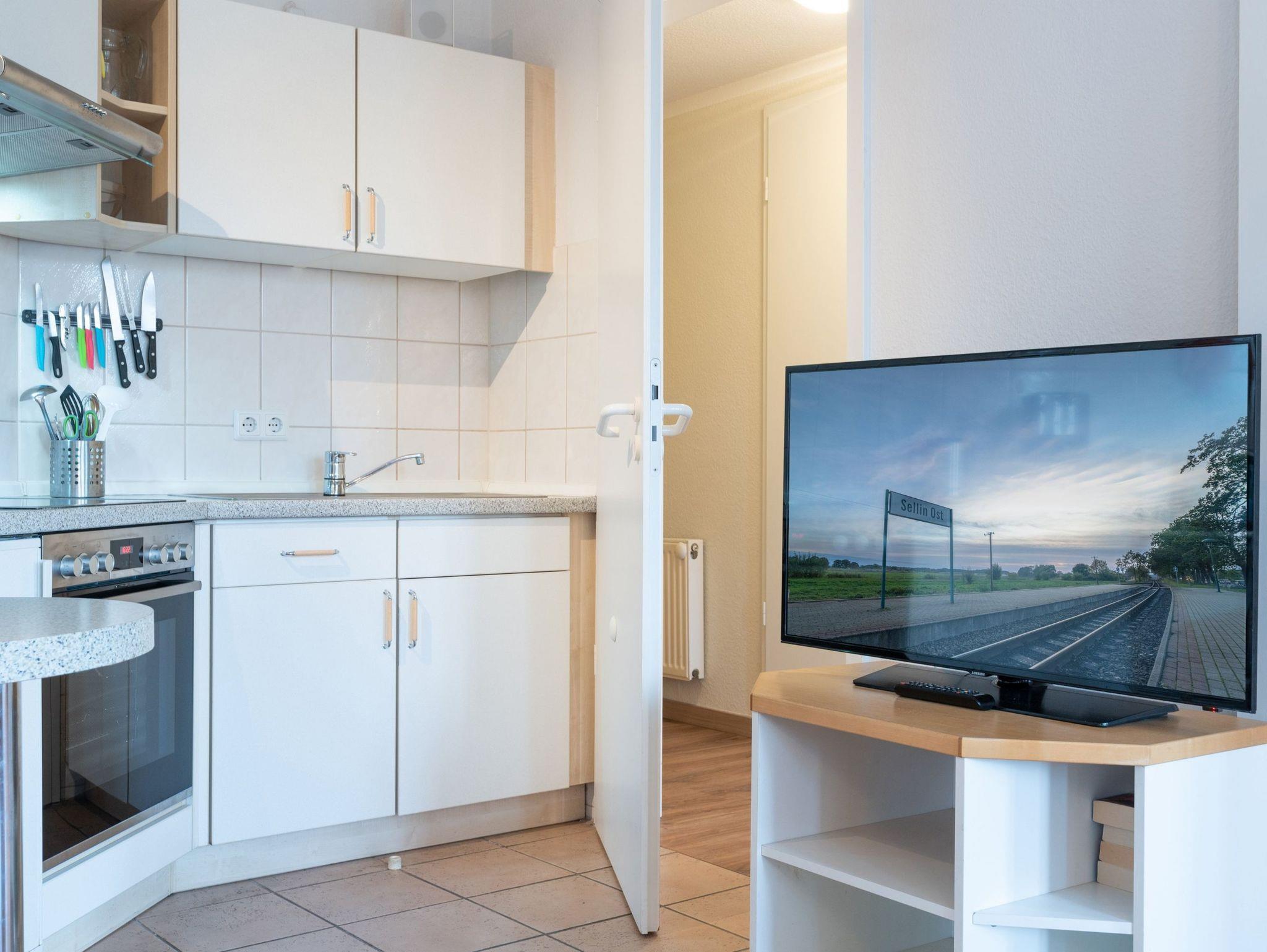 Gemütliche Ferienwohnung 343 im Seepark Sellin mit Balkon, WLAN, Sky-TV und kostenfreiem Schwimmbadzugang für entspannte Urlaubstage.