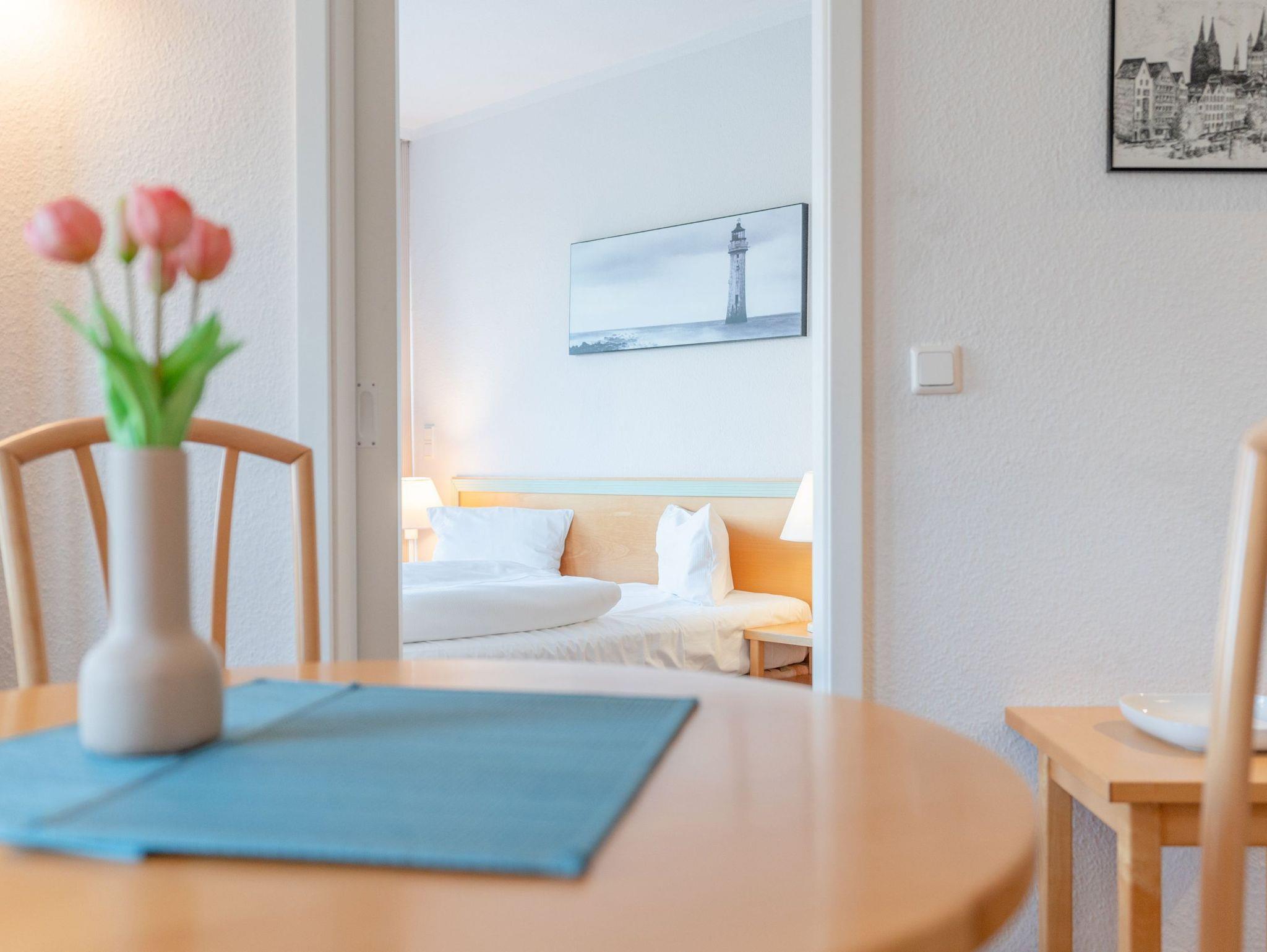 Für Ihren PKW steht ein Tiefgaragenstellplatz zur Verfügung. Für zusätzlichen Komfort können Sie den Brötchenservice nutzen und direkt vor Ort frische Brötchen bestellen.