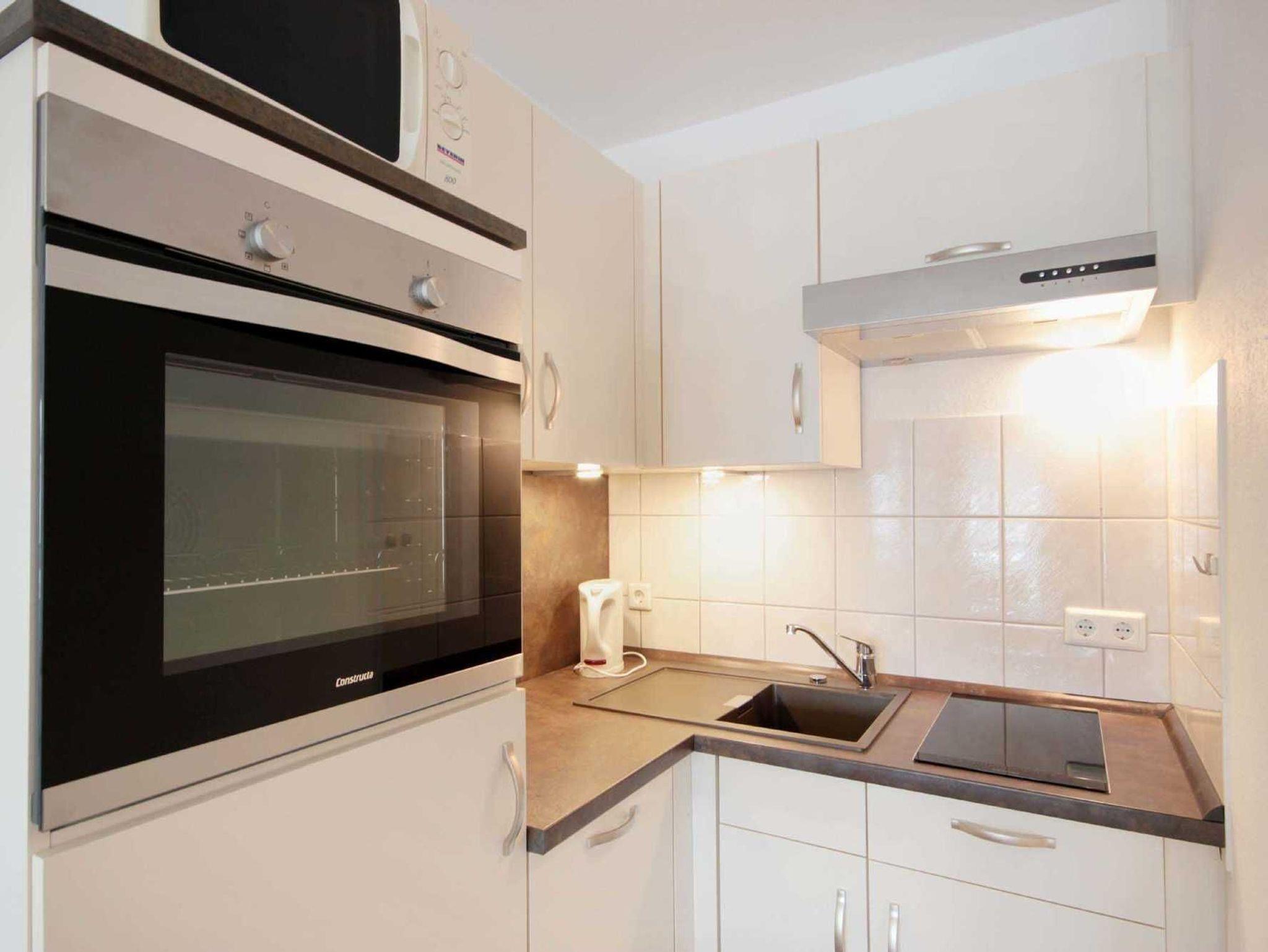 Sie befindet sich im 2. Obergeschoss und verfügt über einen Balkon in östlicher Richtung, ein Schlafzimmer, ein Badezimmer mit Waschtisch, Badewanne mit Duschabtrennung und WC, ein Wohnraum mit einer gemütlichen Sitzcouch zum Ausziehen. Zusätzlich können Sie einen Flat-TV nutzen. Das Schlafzimmer ist mit einem Doppelbett und Kleiderschrank ausgestattet. Zudem gelangen Sie auch von hier aus auf den Balkon. In der Wohnküche finden Sie ein 2-Plattenkochfeld, Backofen, Geschirrspüler, Kühlschrank mit kleinem Gefrierfach, Kaffeemaschine, Wasserkocher, Toaster und Mikrowelle sowie weitere Küchenhelfer.
