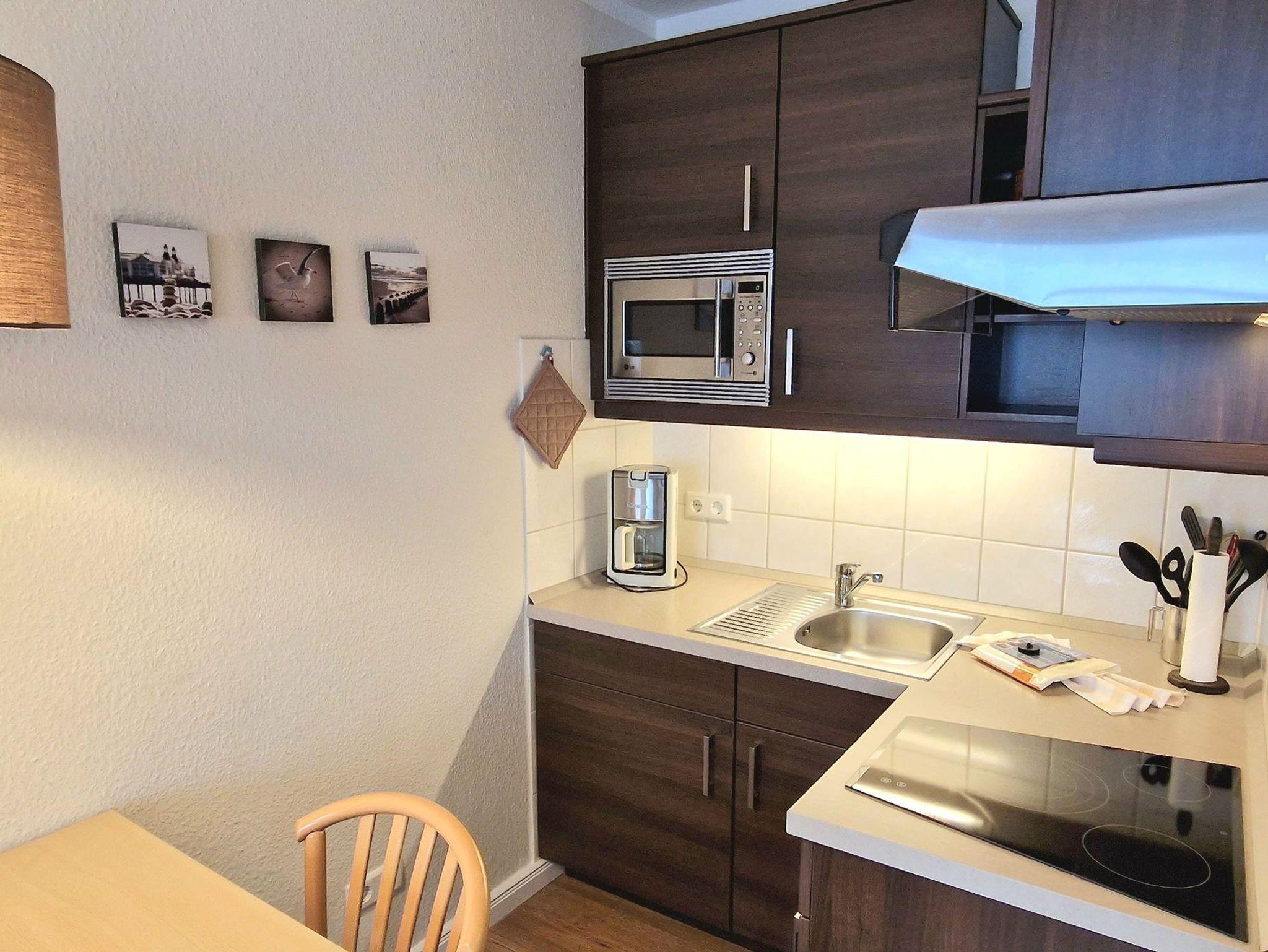 Die Ferienwohnung Fewo 308, Seepark Sellin bietet auf 32 m² Platz für maximal 3 Personen. Sie befindet sich in der 1. Etage des Hauses Haus Having und ist bequem mit einem Fahrstuhl zu erreichen. Die Ausstattung umfasst einen Flachbildfernseher, eine Filterkaffeemaschine, eine Mikrowelle, sowie Bettwäsche inklusive. Auch Haustiere sind herzlich willkommen. Außerdem verfügt die Wohnung über einen Balkon und eine offene Wohnküche.