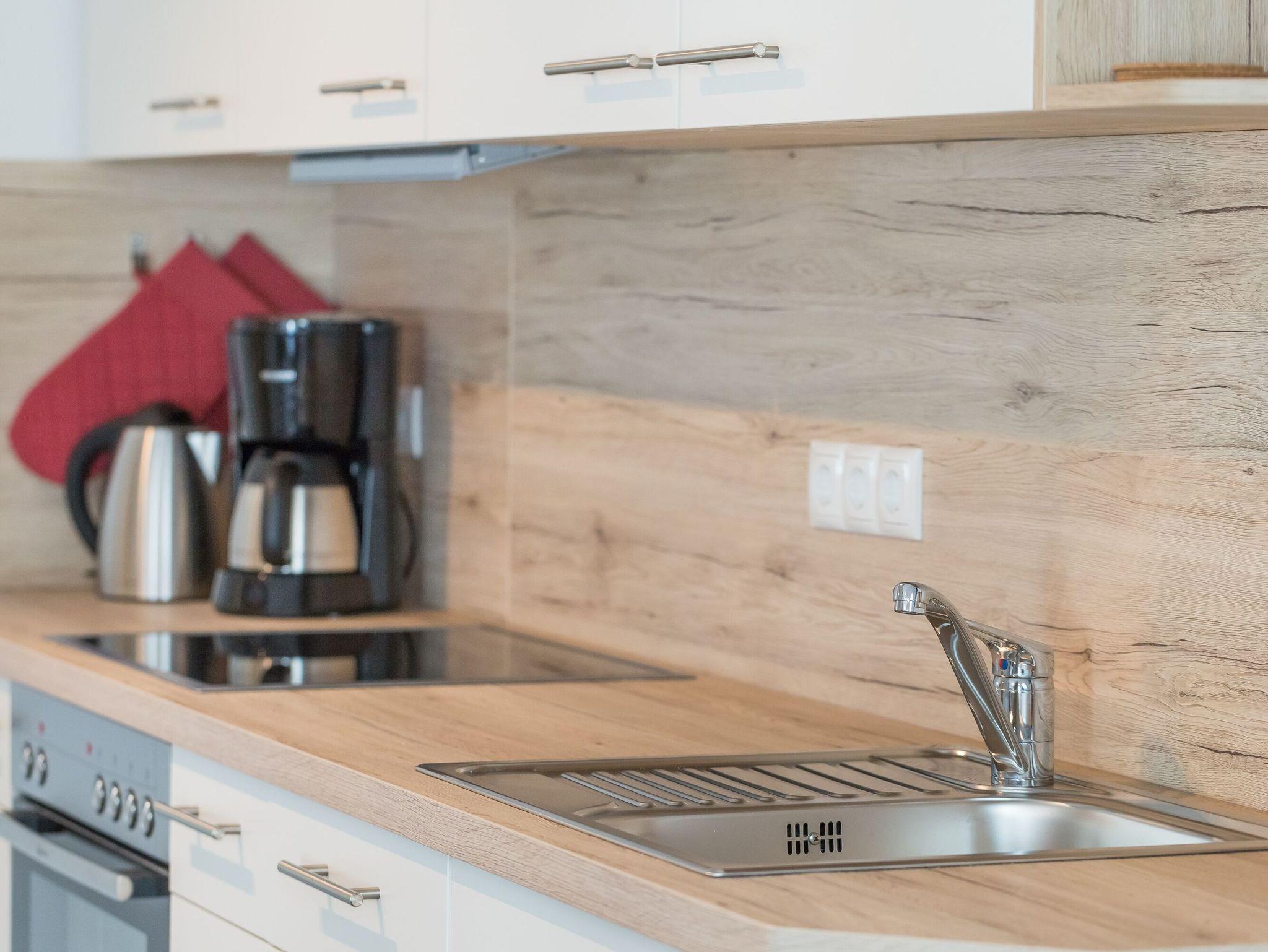 Die voll ausgestattete Küche, welche sich offen an den Wohnbereich anschließt, stellt Ihnen alles zur Verfügung, was Sie für einen Kochabend benötigen; neben der Geschirrspülmaschine, dem Kühlschrank und dem Backofen erwarten Sie zahlreiche Küchenkleingeräte. Das gemütliche Doppelbett ist mit hochqualitativen Matratzen ausgestattet und auch ein Fernseher ist vorhanden. Der geräumige Kleiderschrank bietet genügend Platz für Ihre Lieblingskleidungsstücke.