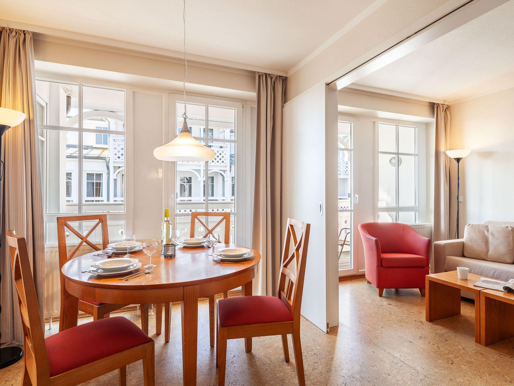 Hochwertige Ferienwohnung 664 im Seepark Sellin mit Balkon, WLAN und Zugang zum Schwimmbad, ideal für erholsame Tage an der Ostseeküste.