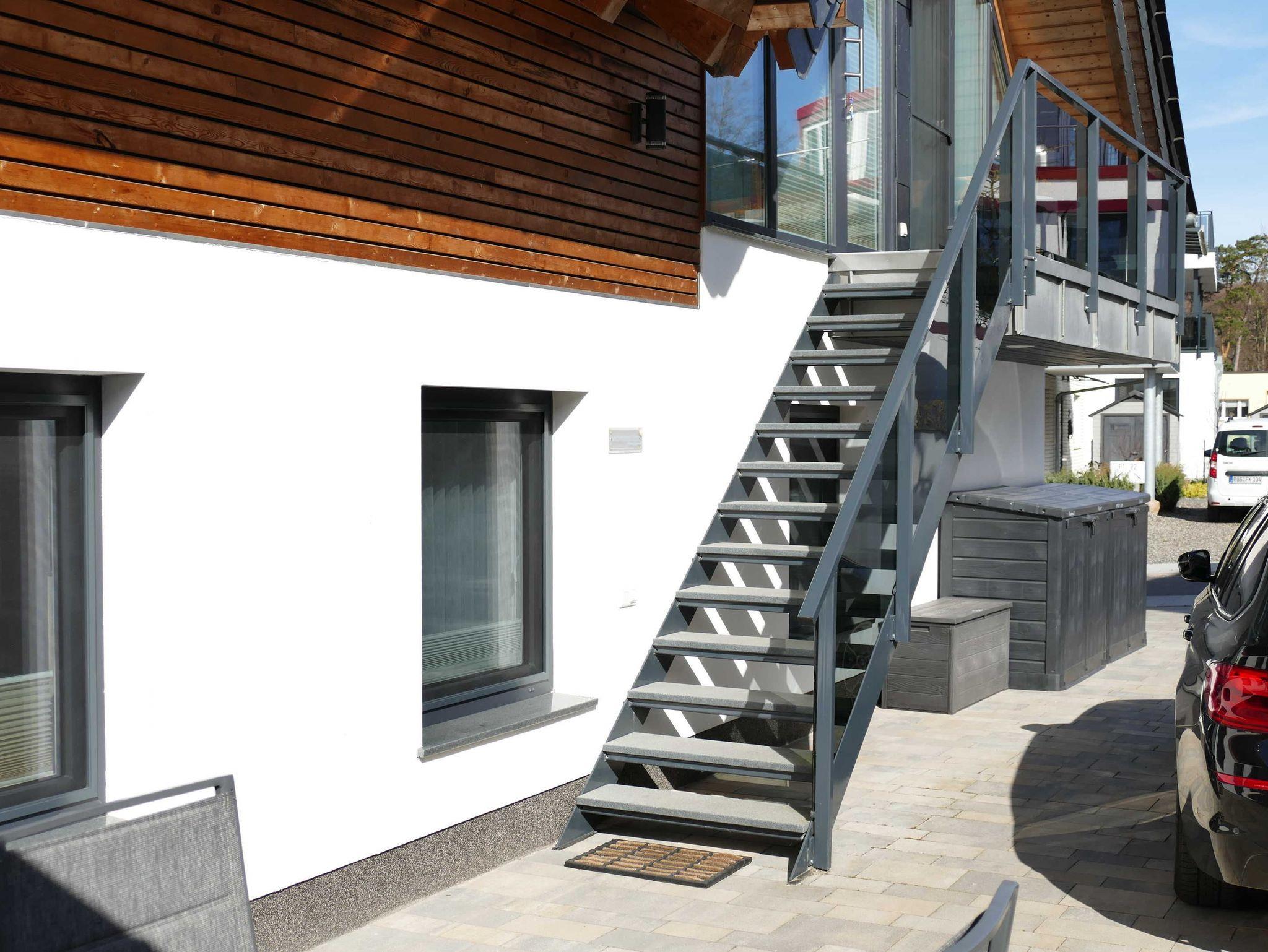Alle Ferienwohnungen haben einen separaten Eingang. Im Erdgeschoß befindet sich vorn die ebenerdig zu erreichende Ferienwohnung Lachmöwe und daneben die über wenige Stufen zugängliche Ferienwohnung Silbermöwe.