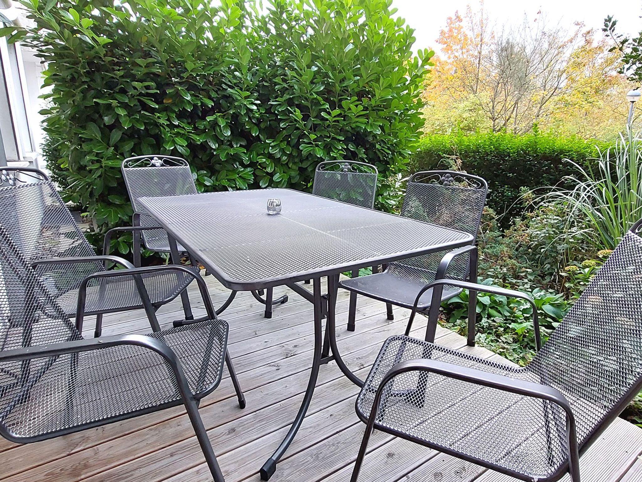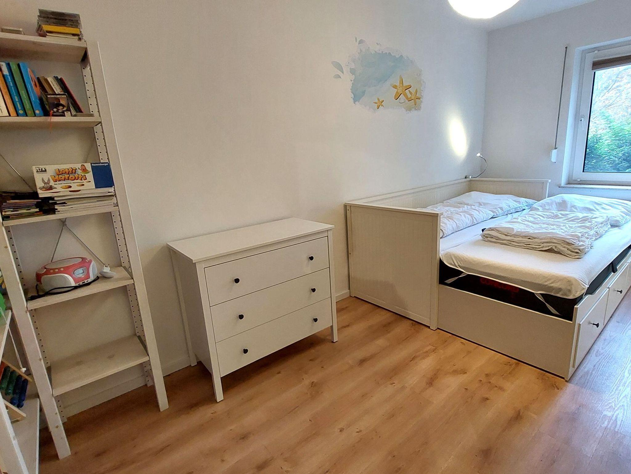 Das 4-Raumapartement MeerZeit ist eine geräumige und familienfreundliche Wohnung mit einer Größe von 78 qm. Sie befindet sich im Erdgeschoss eines Hauses. Die Wohnung verfügt über einen großen Flurbereich mit Garderobe, von dem aus alle Zimmer zugänglich sind. Die separate Küche ist voll ausgestattet und bietet auch einen kleinen Essbereich. Im Badezimmer gibt es eine ebenerdige Dusche, ein WC und eine eigene Waschmaschine. Das Hauptschlafzimmer verfügt über ein Doppelbett. In den beiden Kinderzimmern befindet sich jeweils ein Kojenbett, das je nach Bedarf als Einzel- oder Doppelbett genutzt werden kann. Im Wohnzimmer lädt ein weiterer Essbereich und eine gemütliche Sitzlandschaft zum Verweilen ein. Dort sorgen ein großer Flachbild-TV, kostenfreies WLAN und eine kleine Musikanlage für Unterhaltung bei jeder Wetterlage. Vom Wohnbereich aus gelangt man auf die möblierte Terrasse in südwestlicher Richtung. Von dort aus hat man einen Blick ins Grüne und auch auf den eigenen PKW-Außenstellplatz.