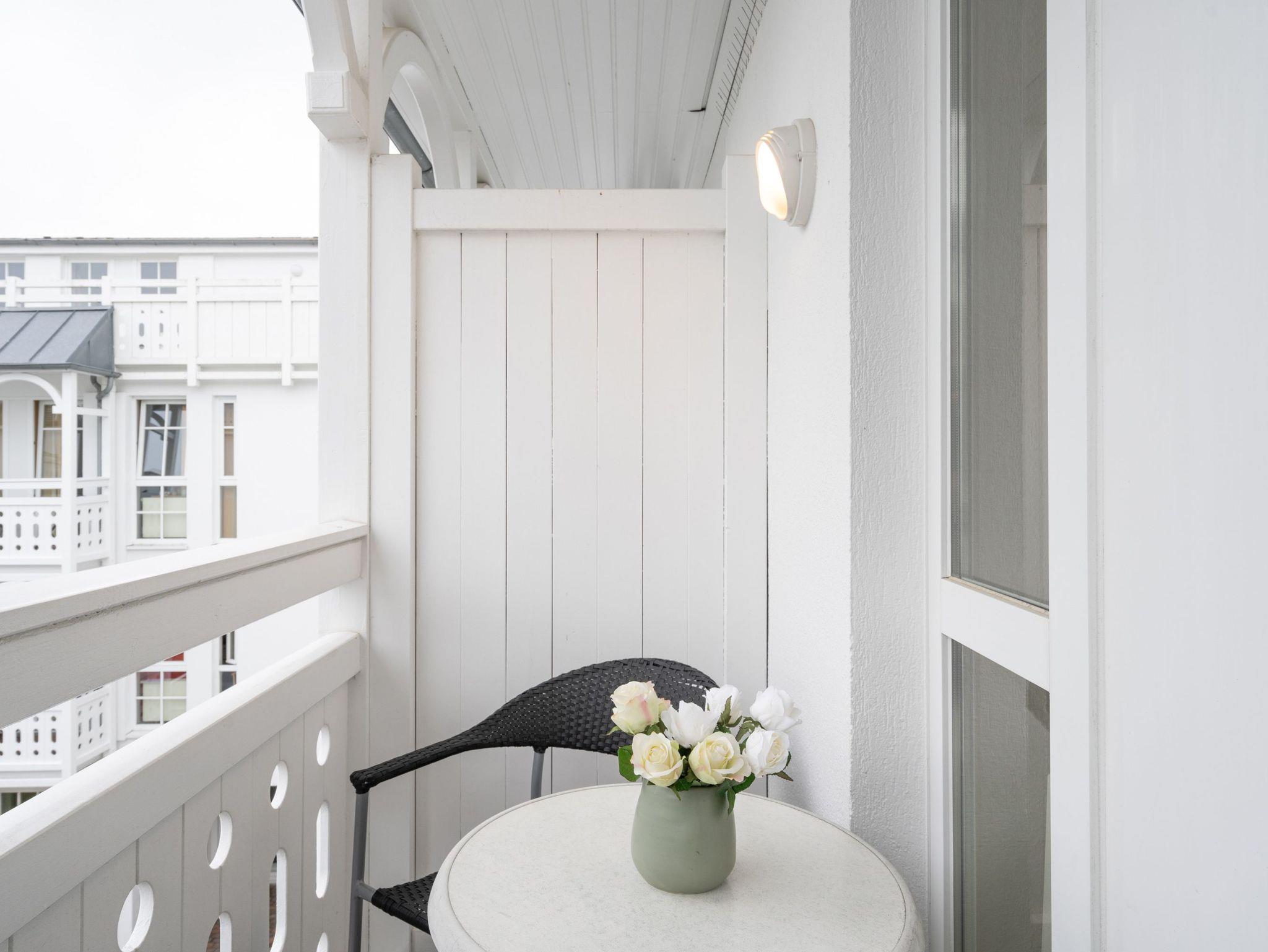 Nach einem erlebnisreichen Urlaubstag können Sie auf dem Balkon in Südwestlage Platz nehmen. Im Nichtraucher-Apartment sind keine Haustiere gestattet.