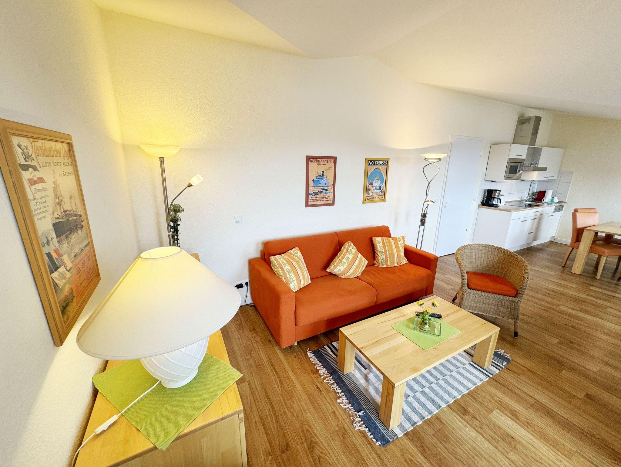 Diese lichtdurchflutete Penthouse-Wohnung mit Balkon bietet Komfort und Blick auf den Selliner See im Seepark Sellin.