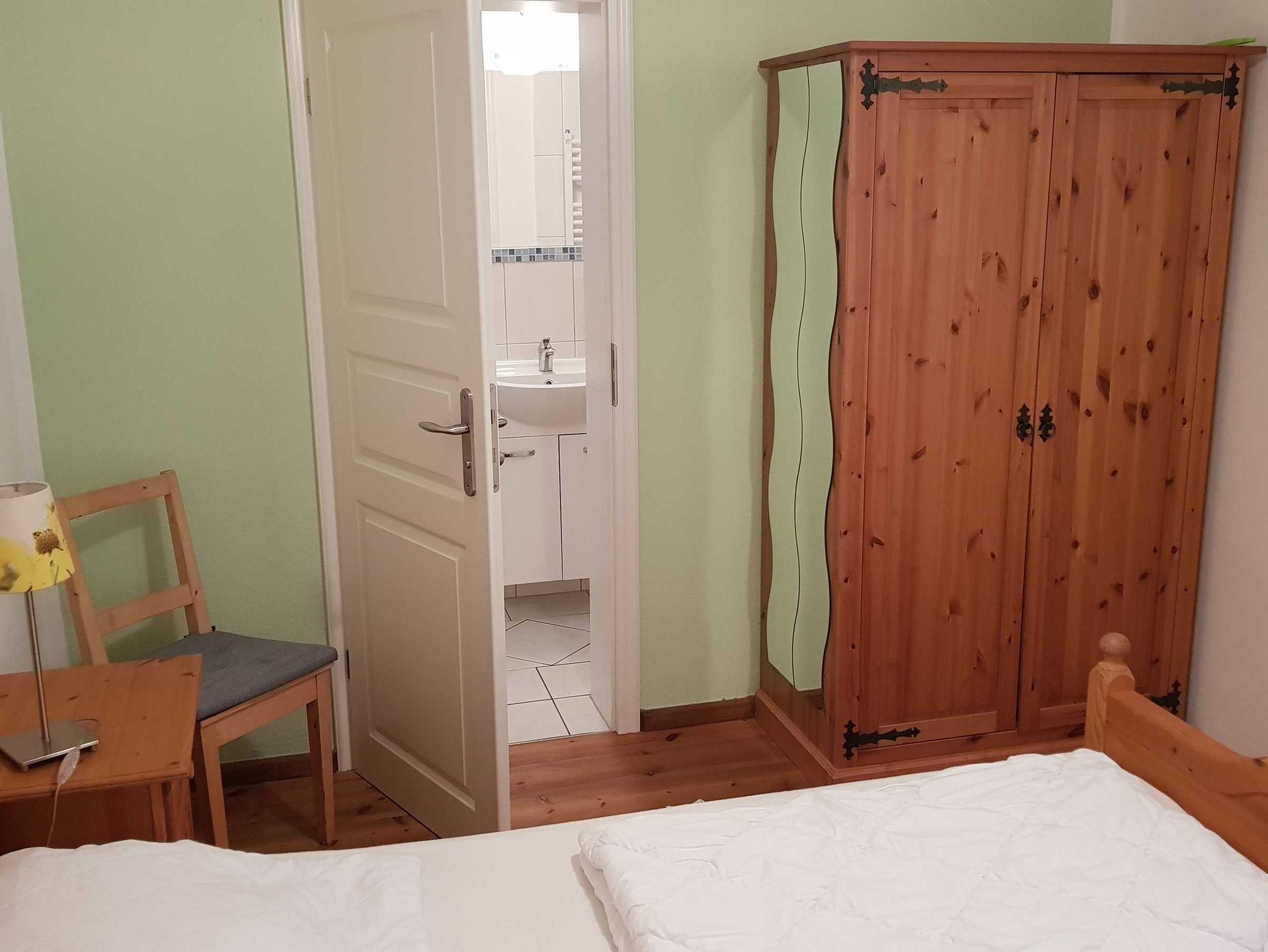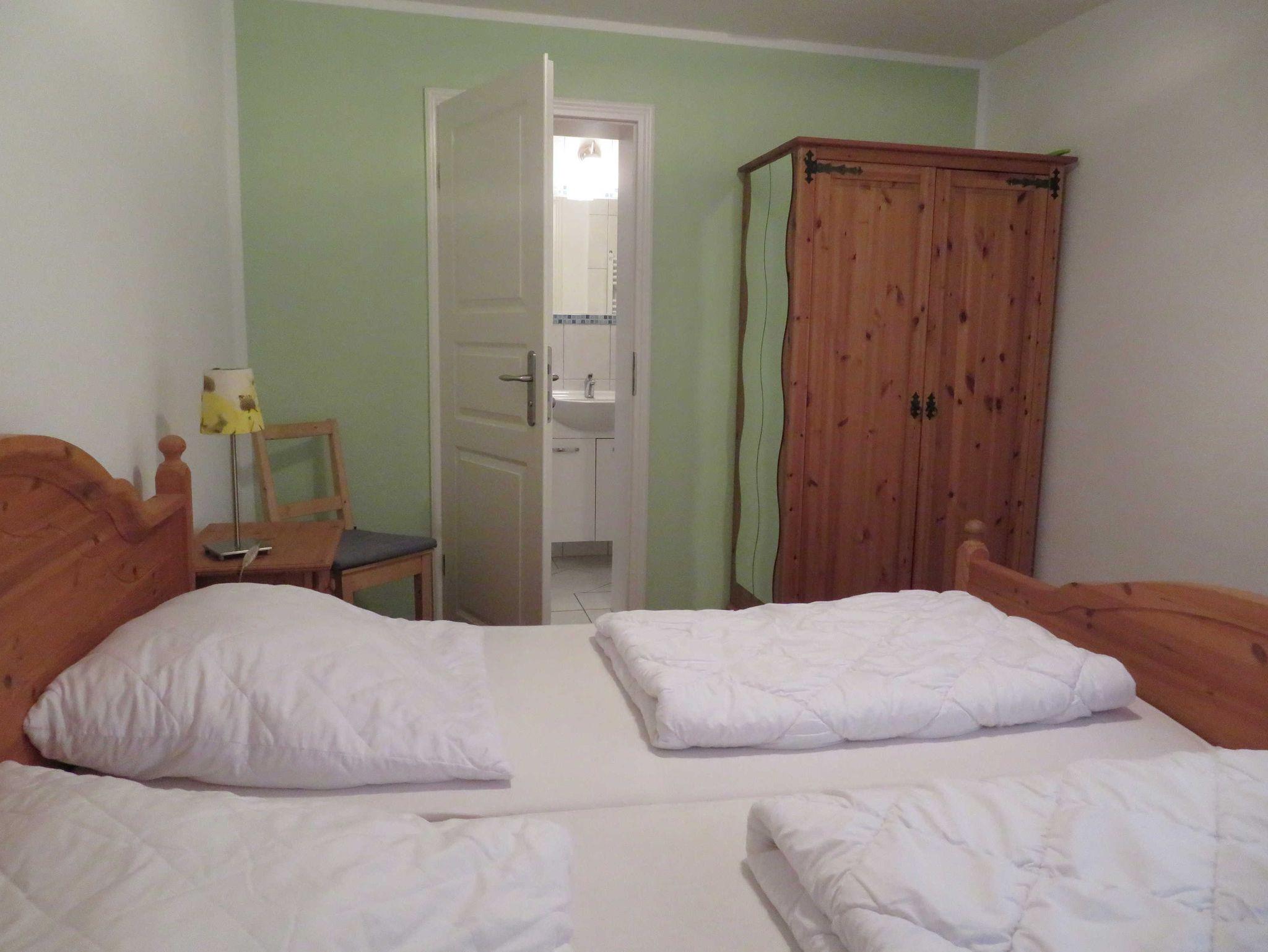Die 3- Raum- Ferienwohnung hat zwei Schlafzimmer, eins mit einem Doppelbett und eins mit zwei Einzelbetten, und im Wohnzimmer ein Schlafsofa mit zwei weiteren Schlafplätzen. Im Wohnzimmer befindet sich die Küche mit Kühlschrank, Backofen, Geschirrspülmaschine, Mikrowelle, Kaffeemaschine, Toaster und Wasserkocher. Die Ferienwohnung hat zwei Bäder mit Dusche und WC. Sie ist mit Kabel- TV ausgestattet und hat eine eigene Terasse.
