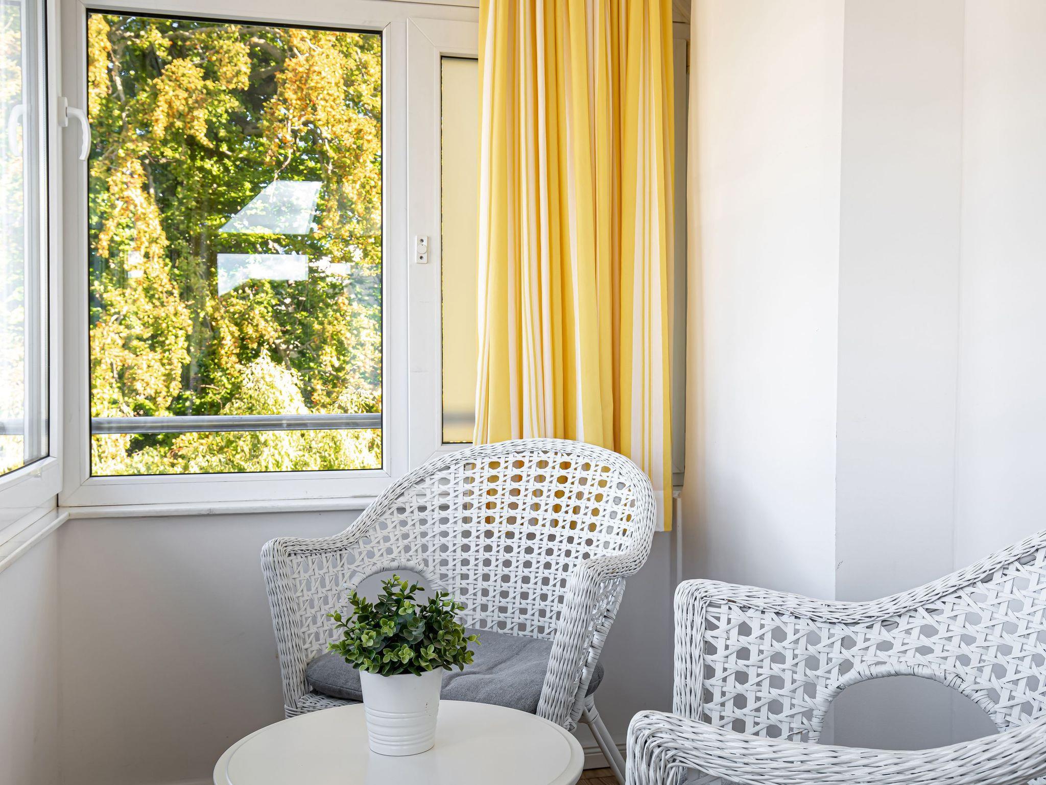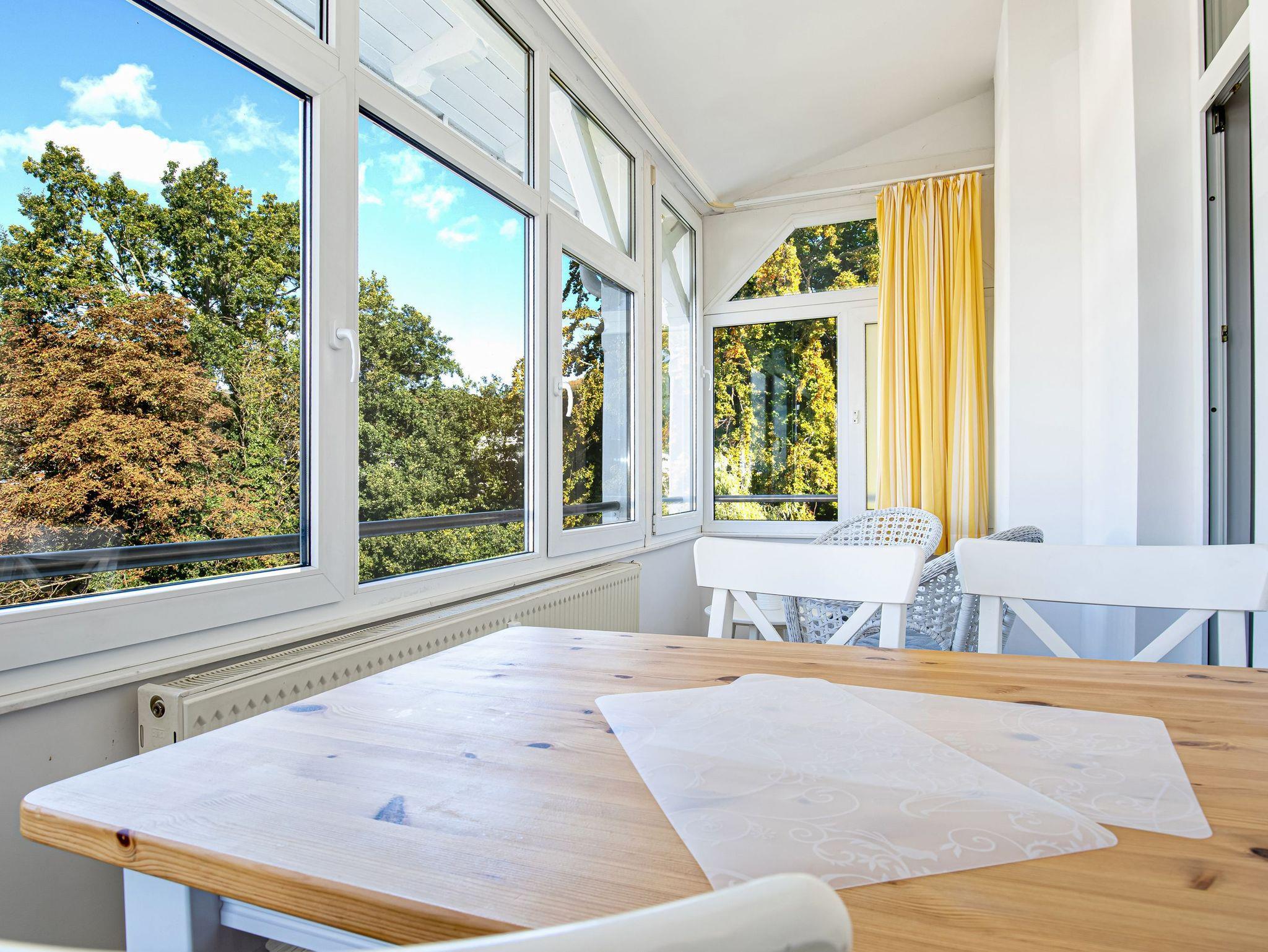 Der Wintergarten lädt, mit Blick zur Granitz, zum Verweilen ein und lässt Sie tagsüber die Sonnenstrahlen genießen.