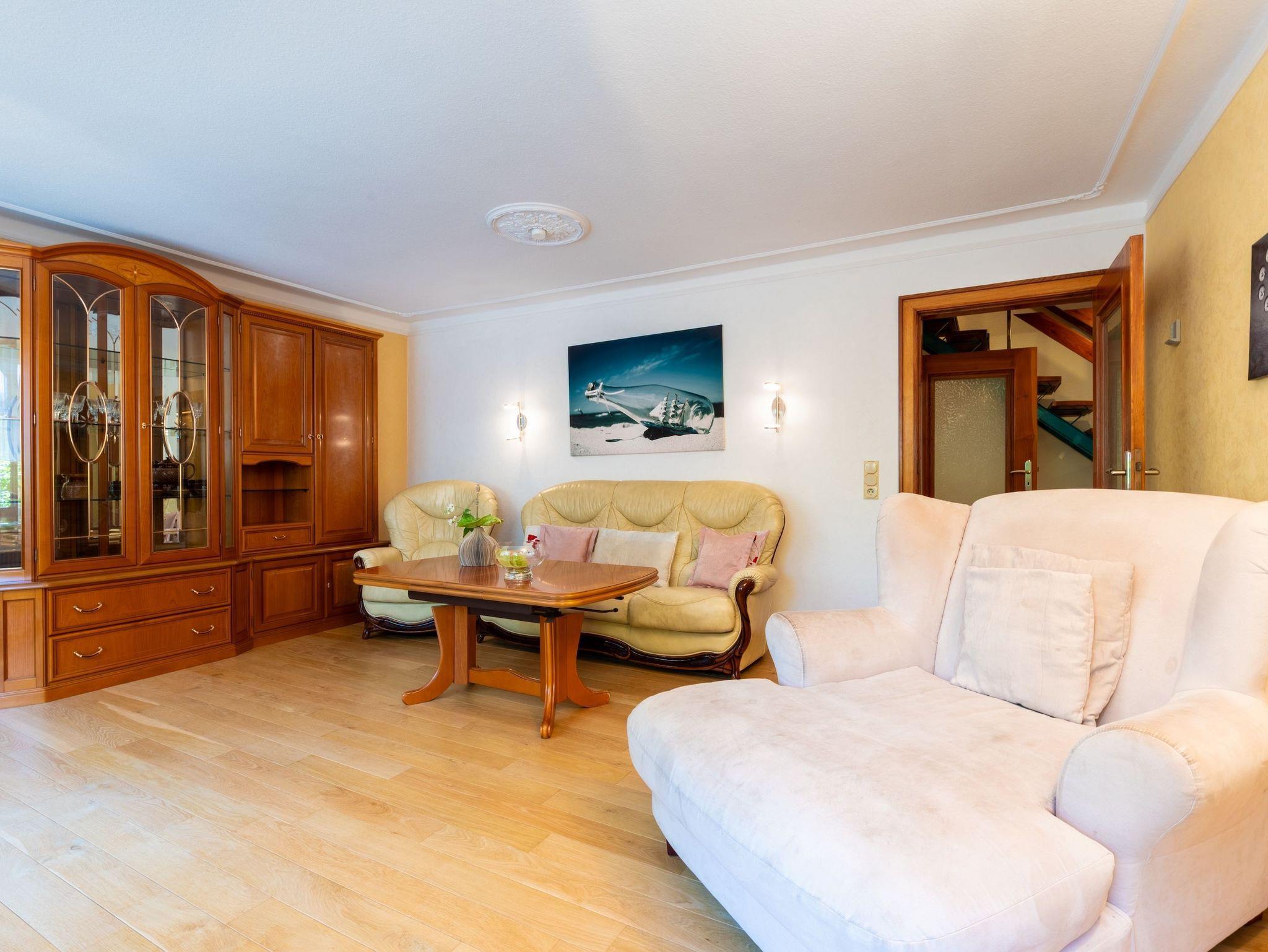 Ferienhaus Kogge in Sellin bietet Komfort und Natur auf 140 m² mit Sauna und Garten, nur 950 m vom Strand entfernt.