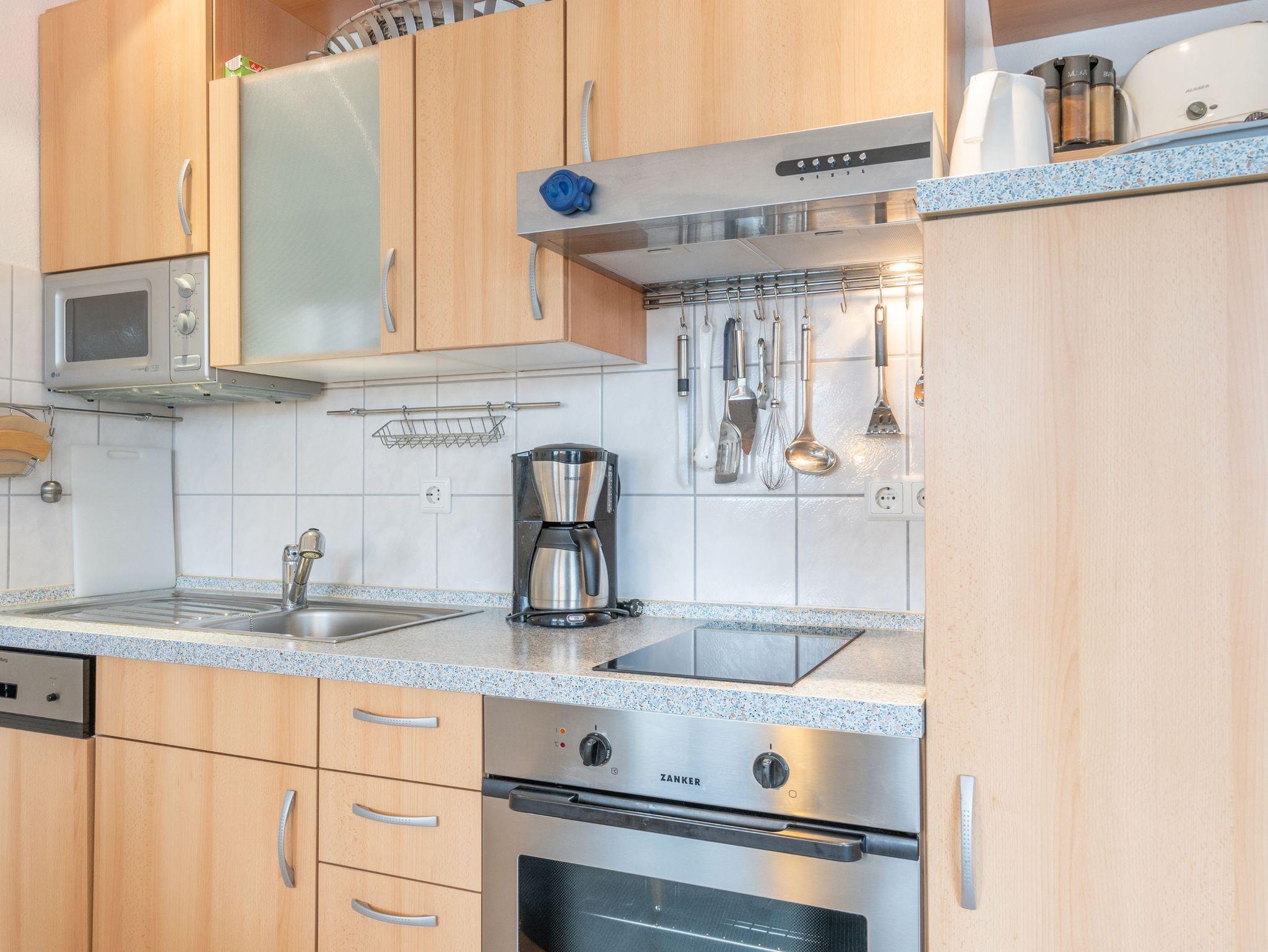 Die Ferienwohnung verfügt über kostenfreies WLAN und die Erstausstattung an Bettwäsche ist inklusive. Das Schlafzimmer mit Verdunklung verfügt über ein Doppelbett, im Wohnzimmer befindet sich zusätzlich eine Doppelschlafcouch. Darüber hinaus verfügt die Ferienwohnung über ein Bad mit Badewanne/WC, Föhn und Kosmetikspiegel. Die voll ausgestattete, offene Küche mit Backofen, Mikrowelle, Geschirrspüler, Kaffeemaschine und Toaster lässt keine Wünsche offen. Ein Fernseher inkl. 3 Sky-Sender rundet die Einrichtung ab.