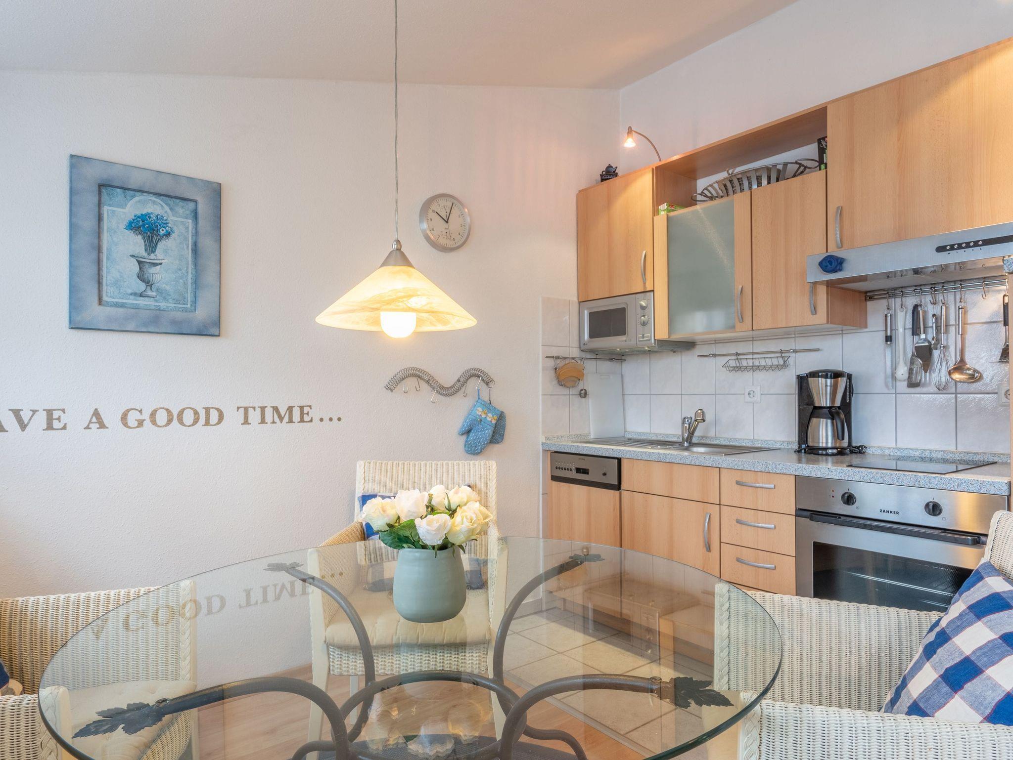 Nach einem erlebnisreichen Urlaubstag können Sie auf dem Balkon in Südostlage Platz nehmen. Der Ausblick und die Sitzgruppe sorgen hier für ein wunderbares Urlaubsgefühl. Im Nichtraucher-Apartment sind keine Haustiere gestattet.