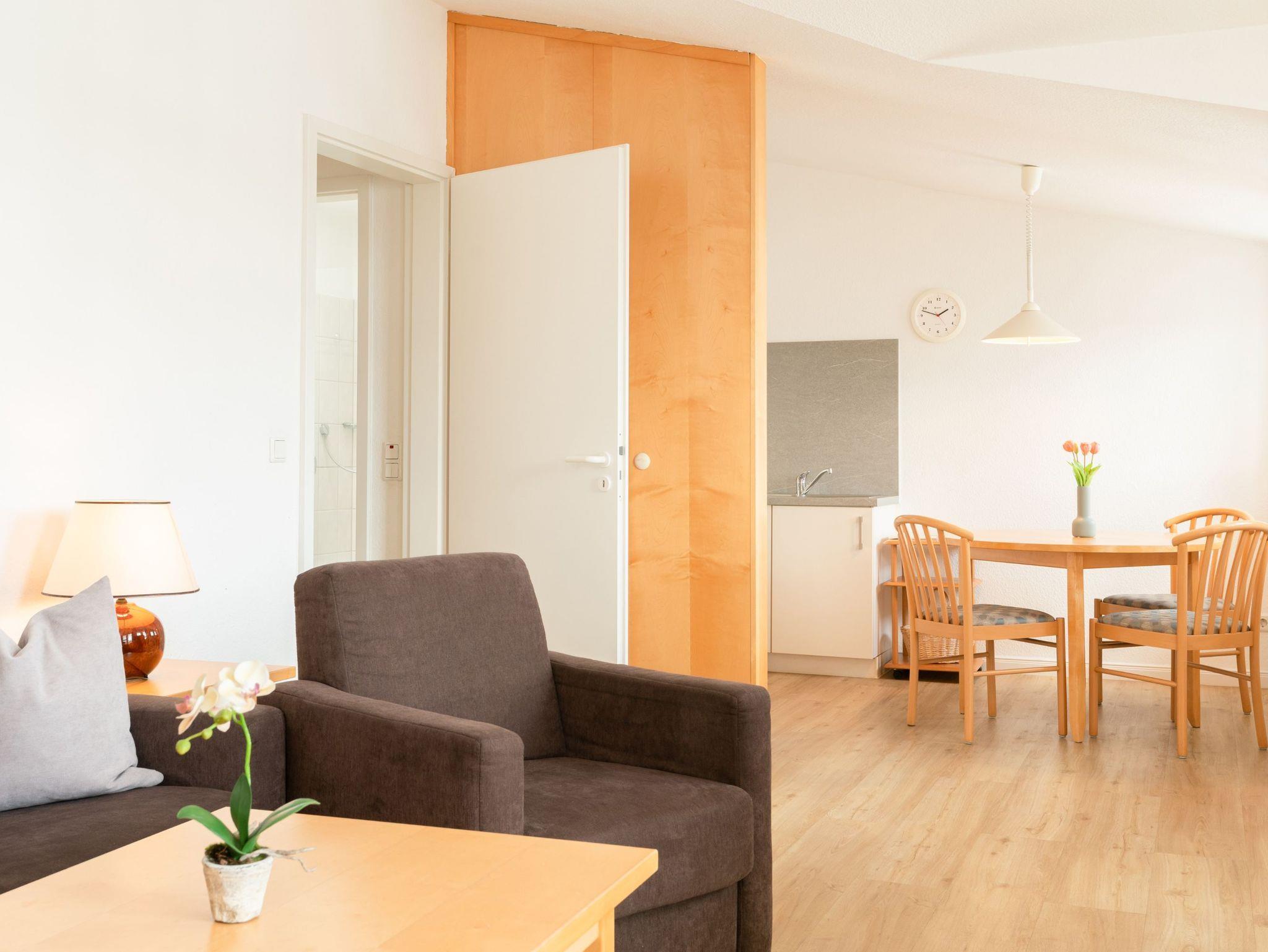 Nach einem erlebnisreichen Urlaubstag können Sie auf dem Balkon in Südostlage Platz nehmen. Der Ausblick und die Sitzgruppe sorgen hier für ein wunderbares Urlaubsgefühl. Im Nichtraucher-Apartment sind keine Haustiere gestattet.