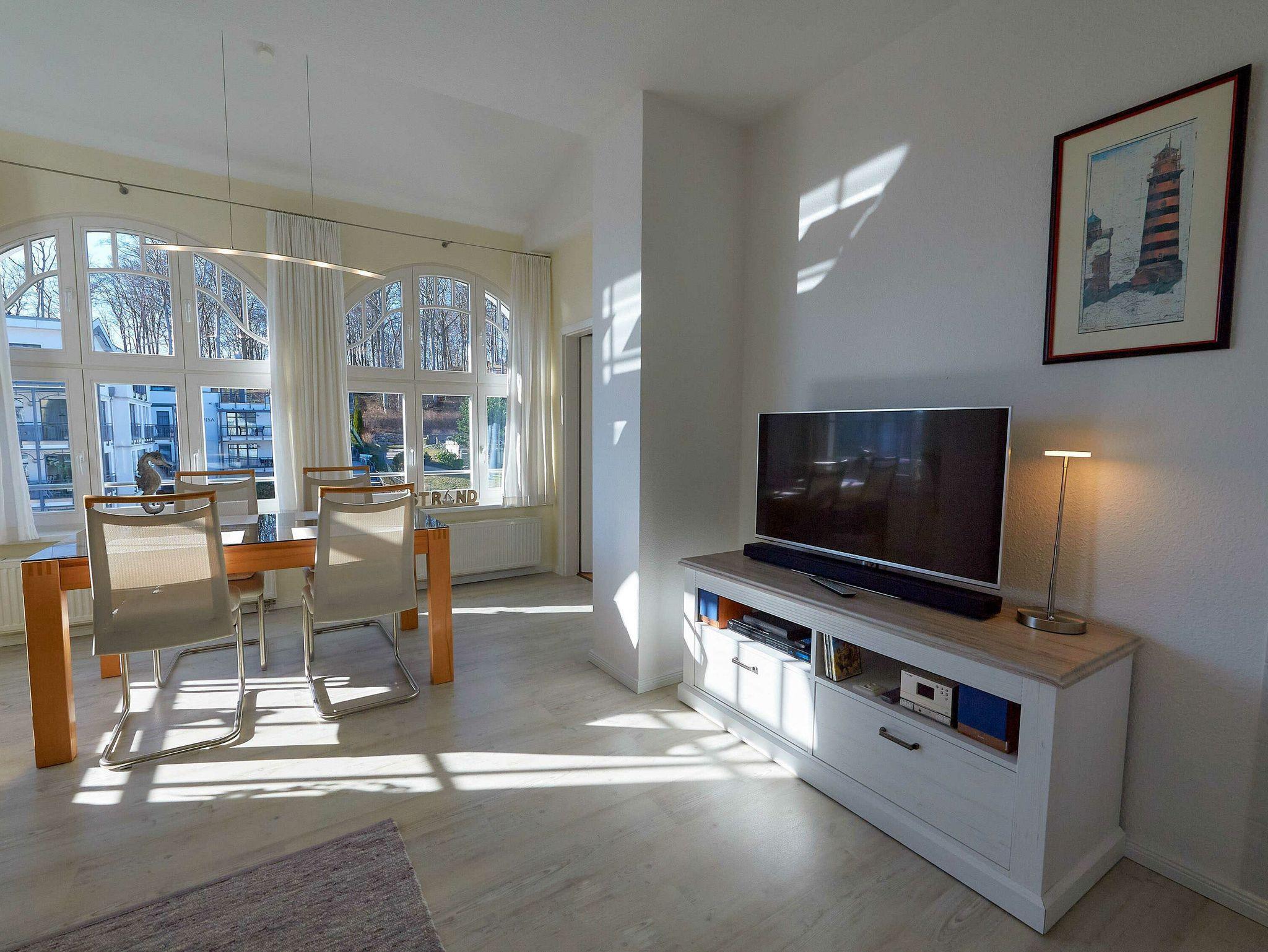 Ihr Urlaubsdomizil verfügt über eine tatsächliche Wohnfläche von ca. 65 qm, die großzügig über alle Wohnbereiche aufgeteilt ist. Sowohl die beiden Schlafräume als auch das Wohnzimmer bieten ausreichend Platz für entspannte Ferientage. Die Ausstattung besteht aus modernen, hochwertigen Möbeln und vielen kleinen Extras. Der mit zwei Sesseln und einem Tisch möblierte Wintergarten sowie der schöne Ausblick über die Wilhelmstraße gehören neben der bevorzugten Lage zum Strand zu den Highlights der Wohnung.