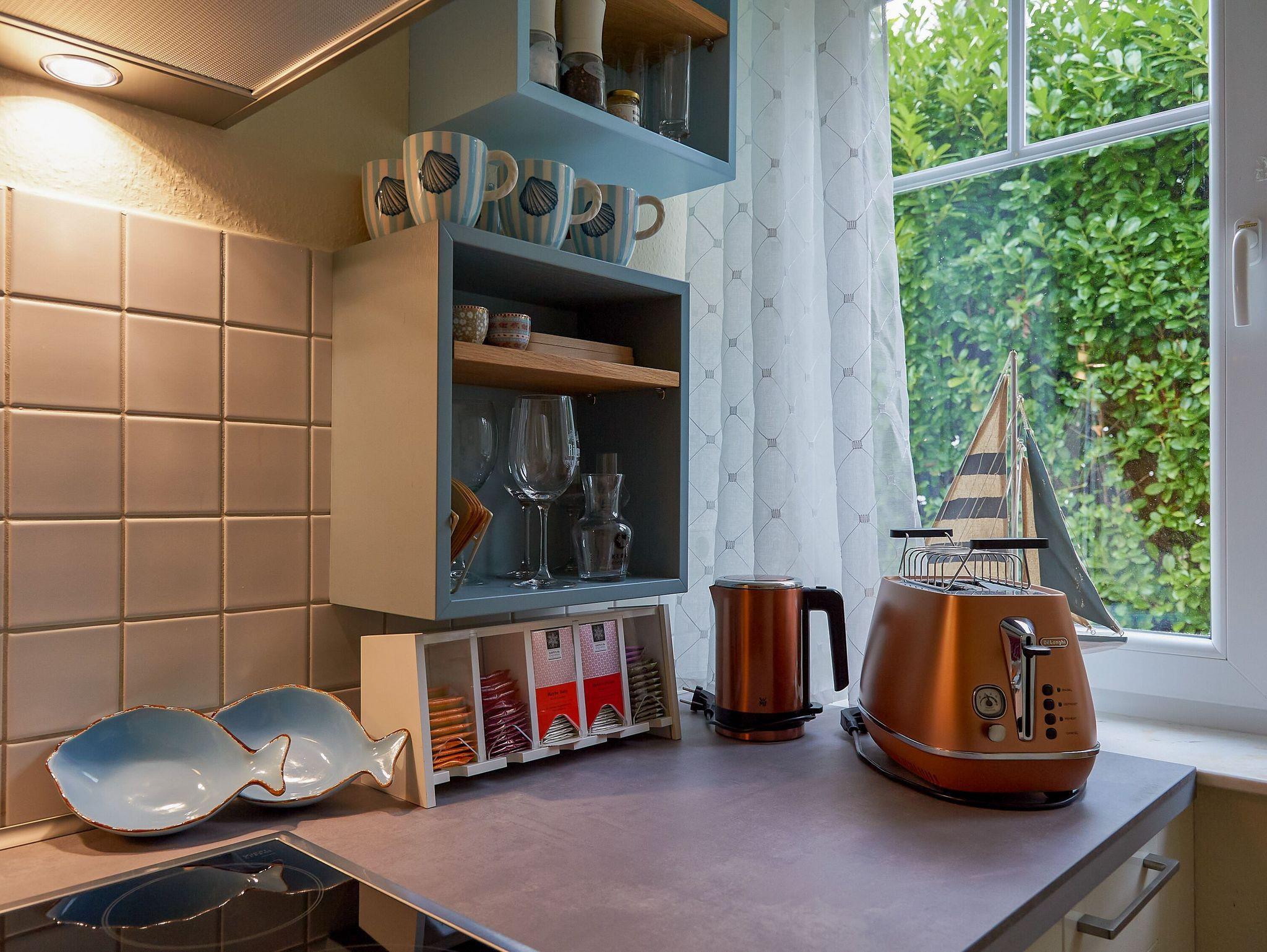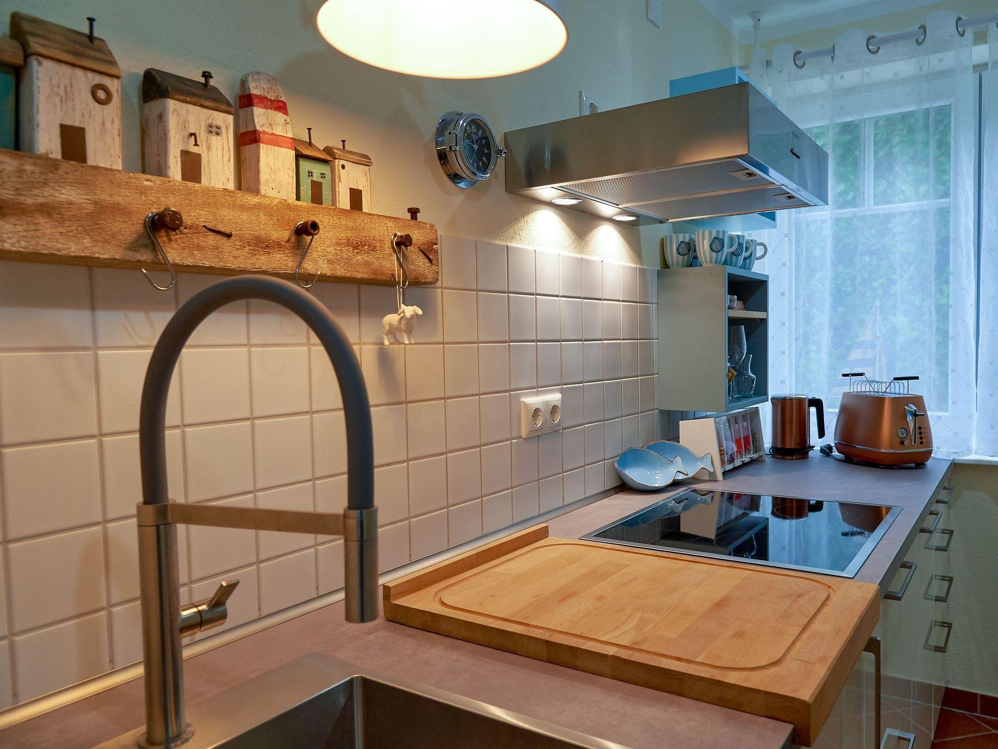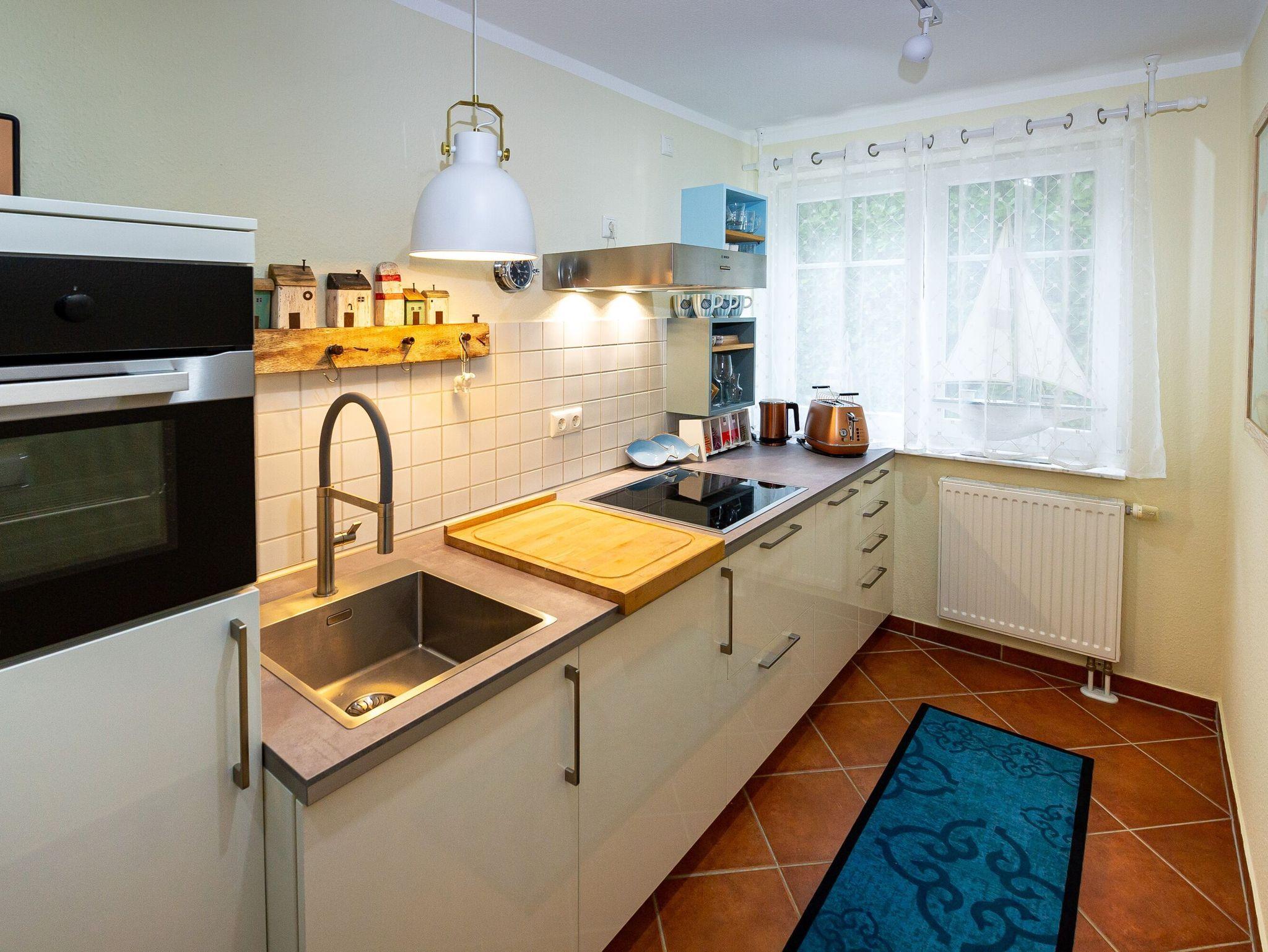 In der Küchenzeile finden Sie u.a. eine Spülmaschine, einen Kühlschrank mit Gefrierfach, ein 4-Platten-Ceranfeld, einen Backofen und diverse Kleingeräte vor, so dass Sie sich nach Herzenslust selbst bekochen können. Bis zum nächsten Einkaufsmarkt mit Bäcker sind es nur ca. 4 Gehminuten.