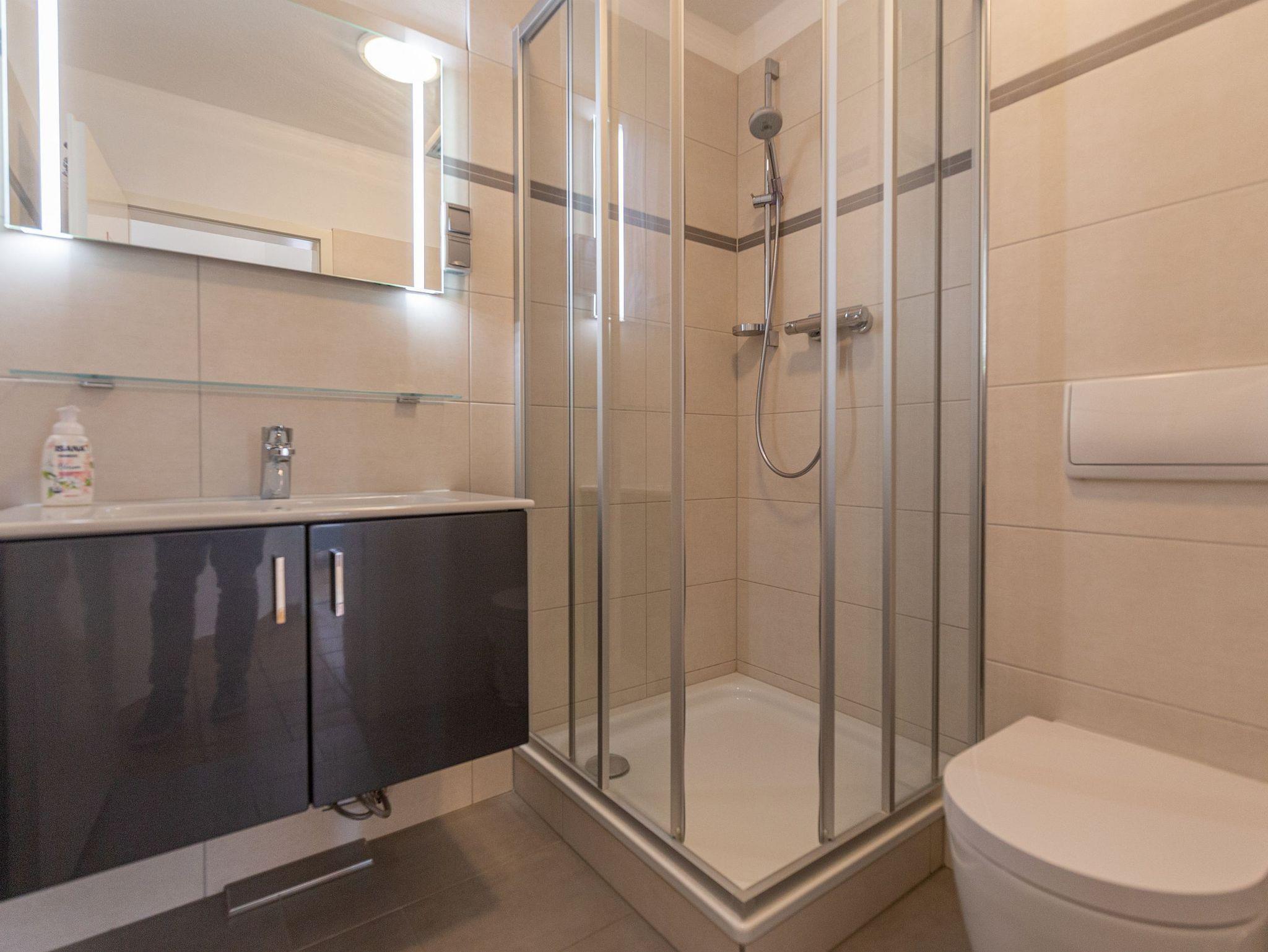 In der Ferienwohnung befinden sich zusätzlich 1 Gäste-WC und ein Duschbadezimmer mit WC.