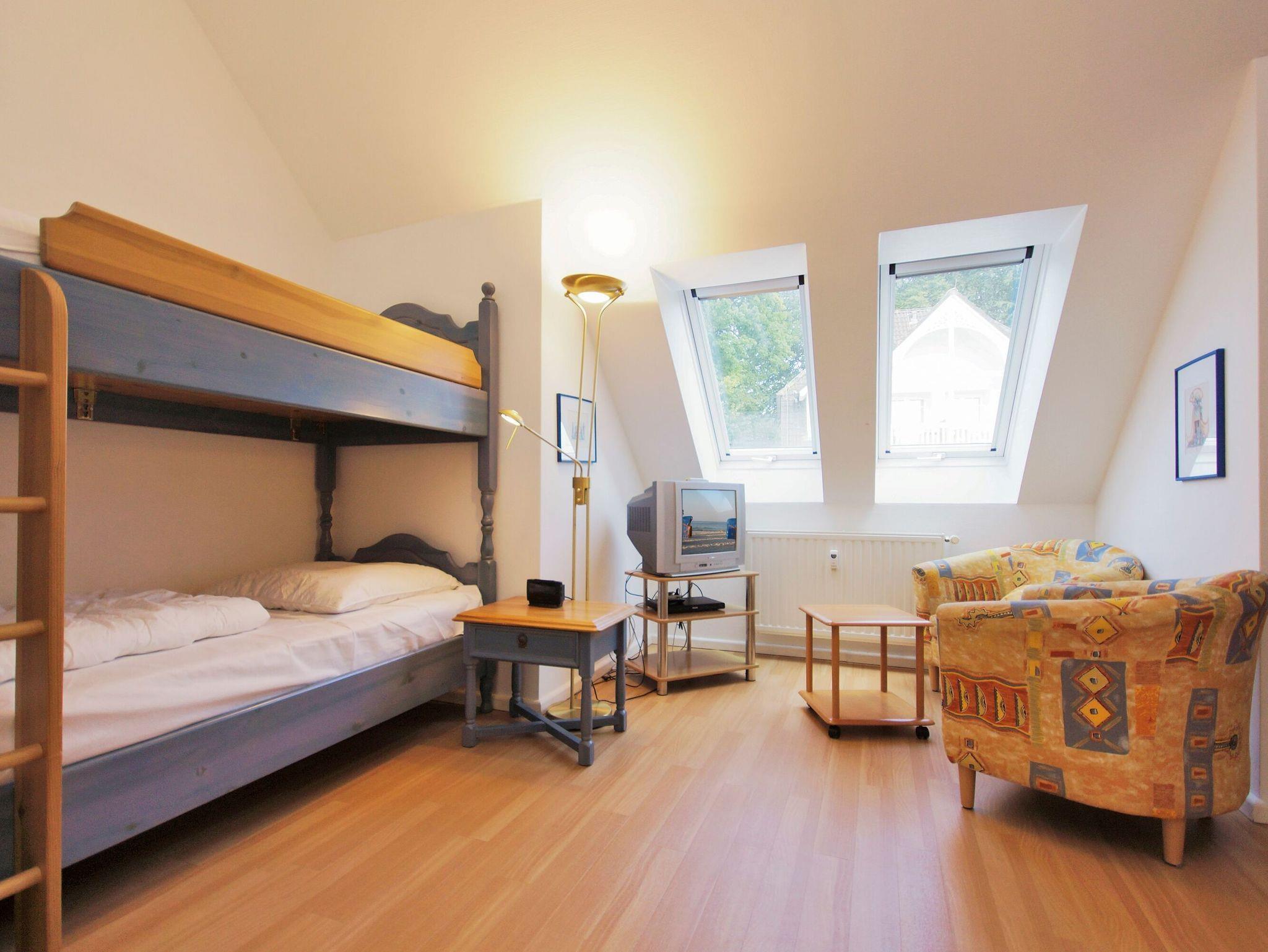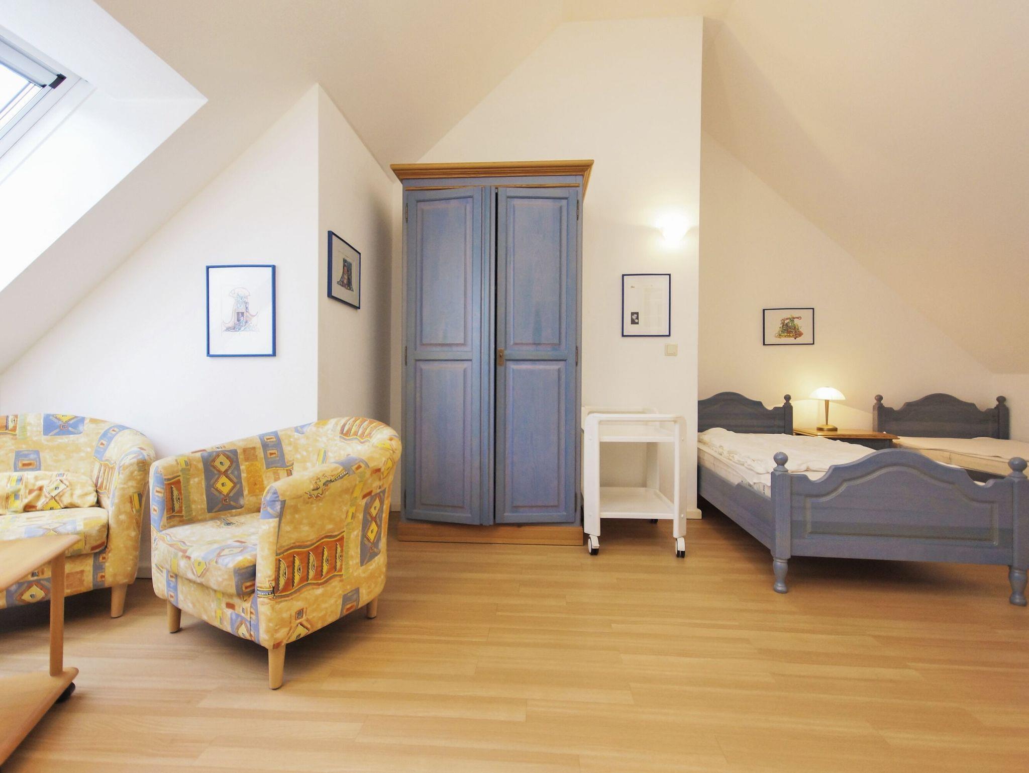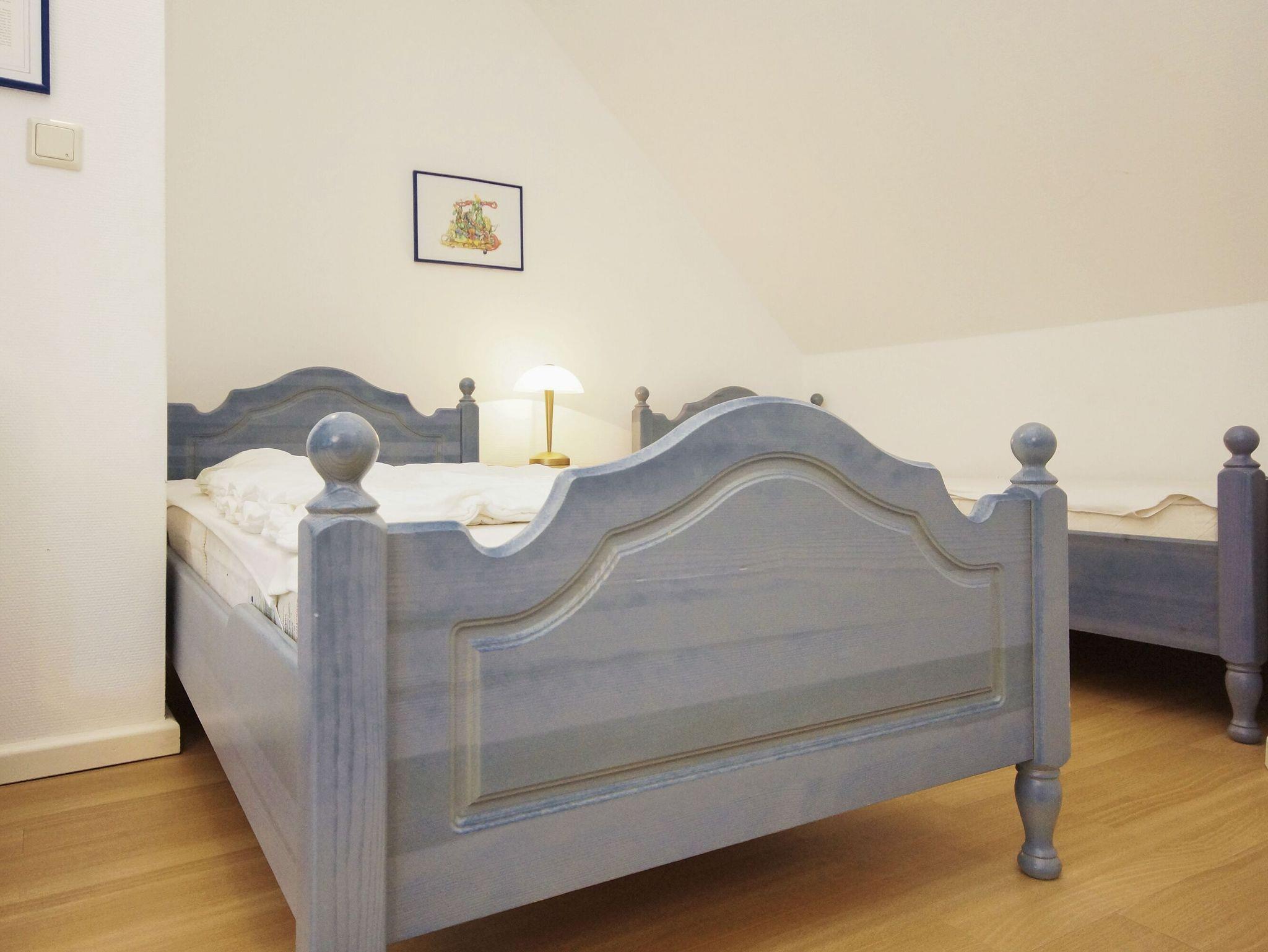 Die zwei getrennten Schlafzimmer in der beliebten Maisonettewohnung ''Wellenspiel'' sind für bis zu 6 Personen ausgelegt und auch für reisende Familien vorteilhaft.