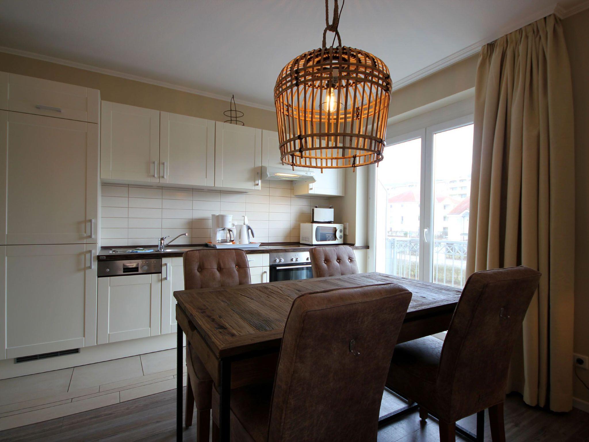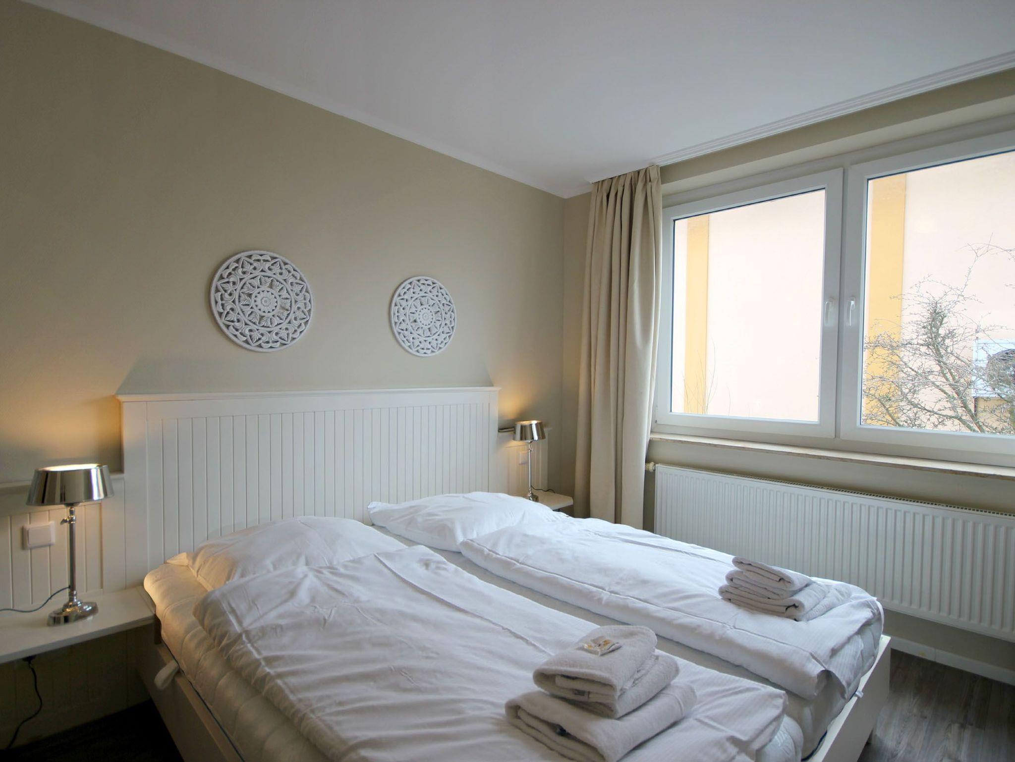 Ihre 2-Zimmer Ferienwohnung 65RB8 Seestern befindet sich im 1. Obergeschoss und ist ca. 48 qm groß. Die Nichtraucherwohnung verfügt über einen Balkon in Richtung Osten und ist für bis zu 4 Personen gut geeignet. Neben dem gemütlichen Wohnbereich mit Zugang zum Balkon, gehört eine Sitzecke mit Schlaffunktion, ein Essbereich, Flachbild TV sowie WLAN. Im Schlafzimmer erwartet Sie ein Doppelbett, ein zusätzlicher TV sowie ein Kleiderschrank. Zudem können Sie eine voll ausgestattete und im Wohnbereich integrierte Küchenzeile mit Geschirrspüler, Backofen, Wasserkocher, Toaster, Kaffeemaschine sowie umfangreiches Küchengeschirr nutzen. Das moderne Badezimmer erwartet Sie mit Waschtisch, WC und Dusche. Einen Parkplatz sowie eine Fahrradunterstellmöglichkeit befinden sich direkt am Objekt.