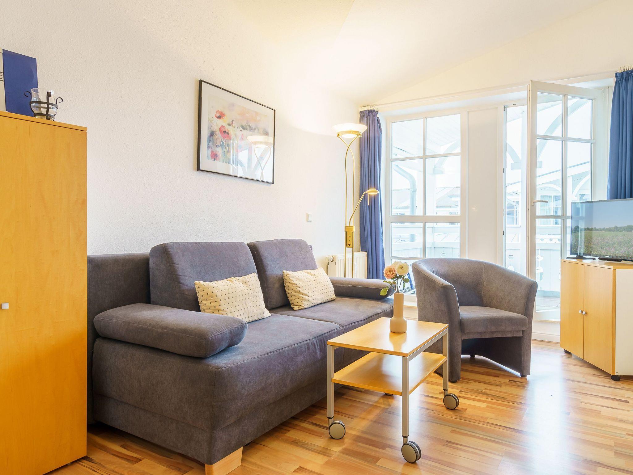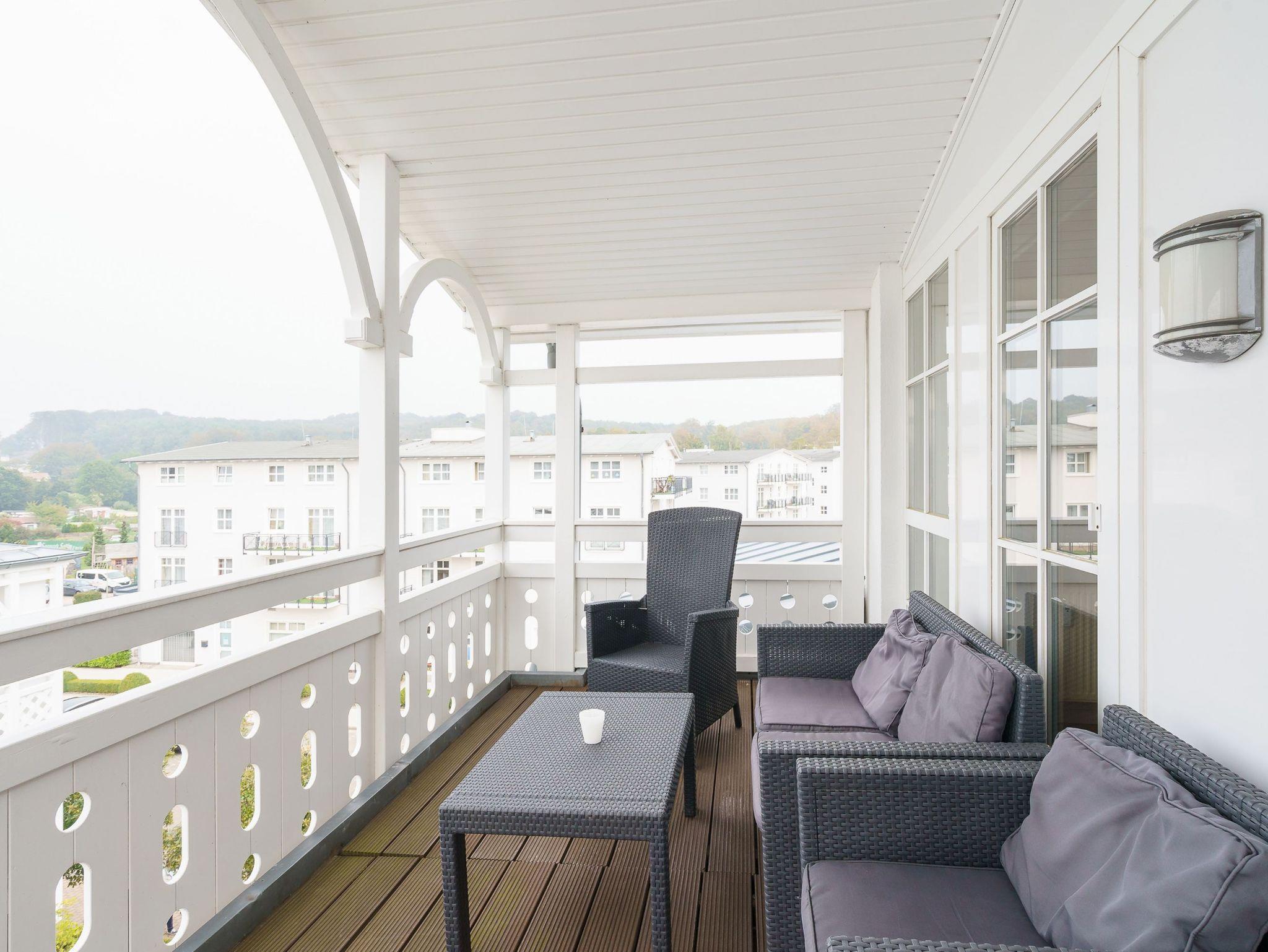 Komfortable Ferienwohnung 712 im Seepark Sellin mit Balkon, kostenfreiem WLAN und täglichem Schwimmbadzugang.