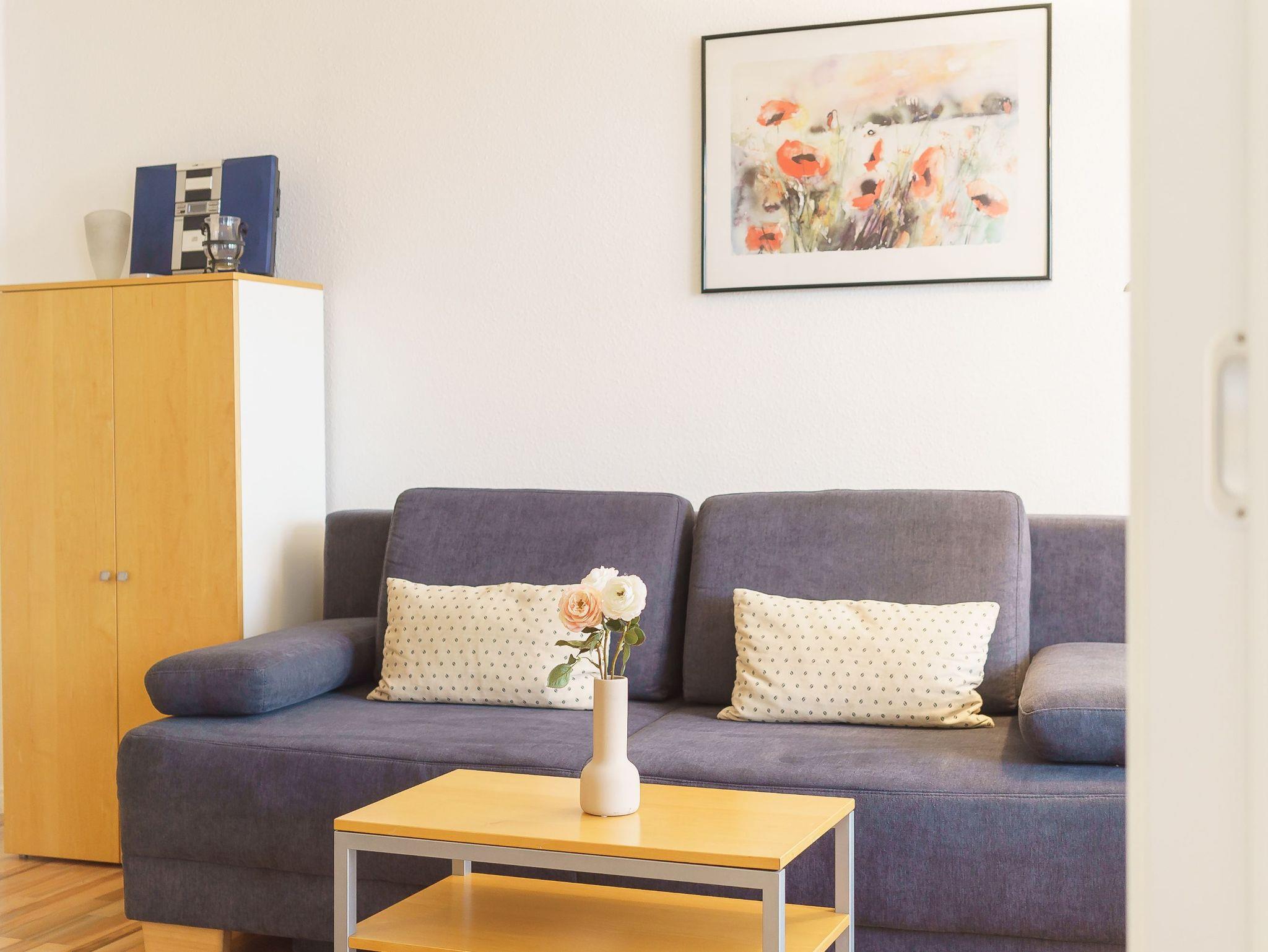 Die Ferienwohnung verfügt über kostenfreies WLAN und die Erstausstattung an Bettwäsche ist inklusive. Das Schlafzimmer mit Verdunklung verfügt über ein Doppelbett, im Wohnzimmer befindet sich zusätzlich eine Doppelschlafcouch. Darüber hinaus verfügt die Ferienwohnung über ein Bad mit Badewanne/WC. Die voll ausgestattete, offene Küche mit Backofen, Mikrowelle, Kaffeemaschine und Toaster lässt keine Wünsche offen. Ein Fernseher inkl. 3 Sky-Sender rundet die Einrichtung ab.