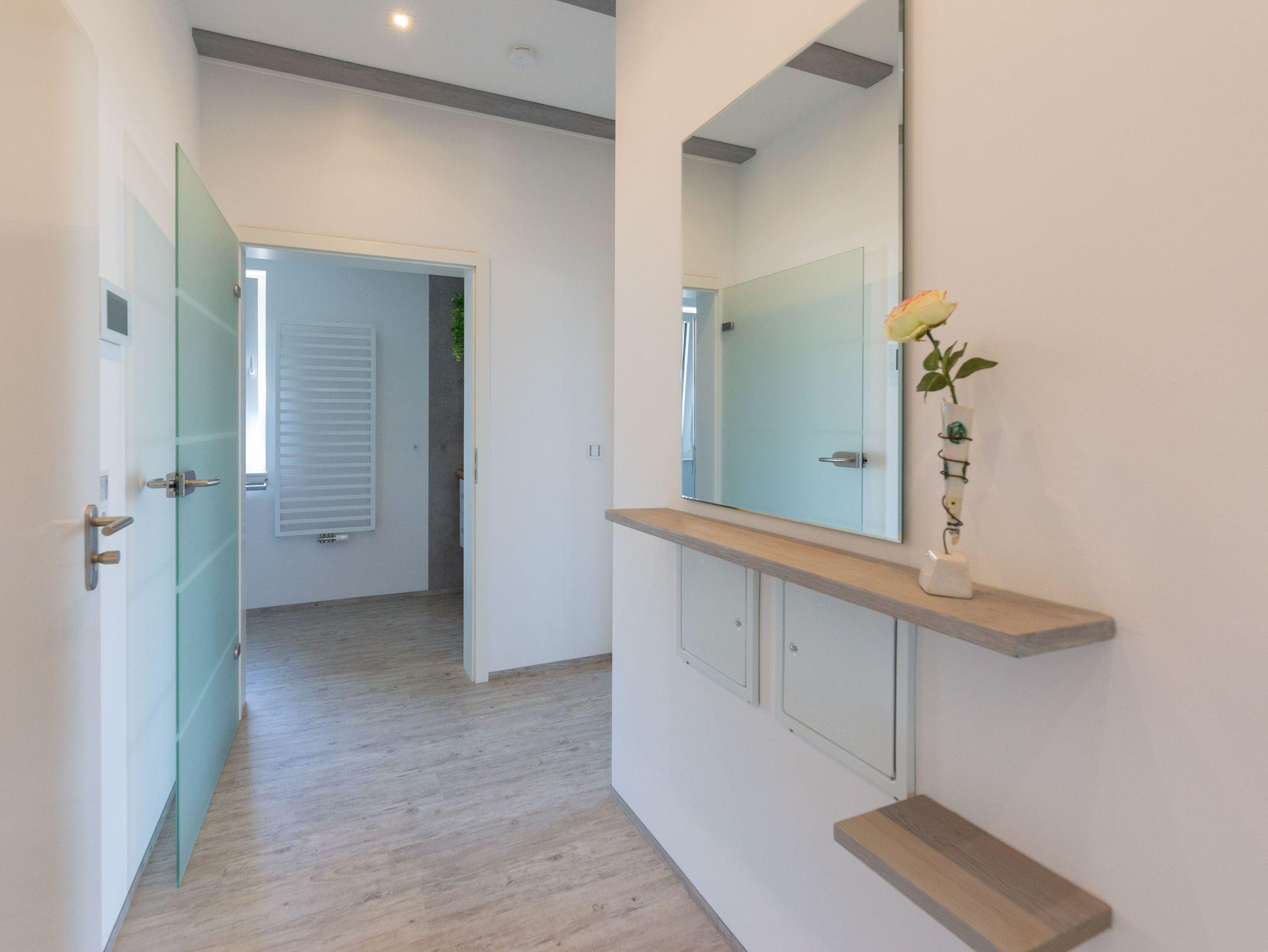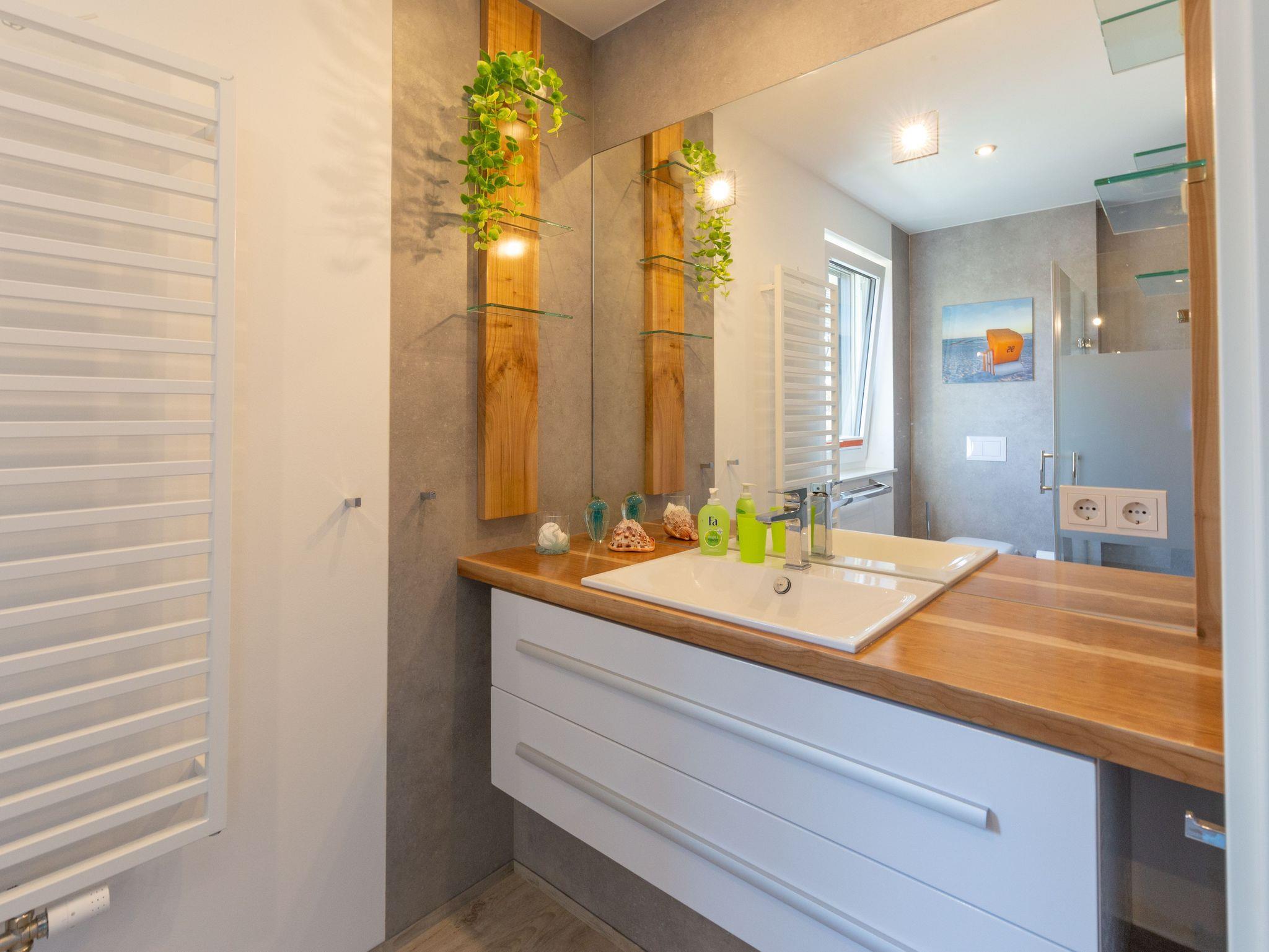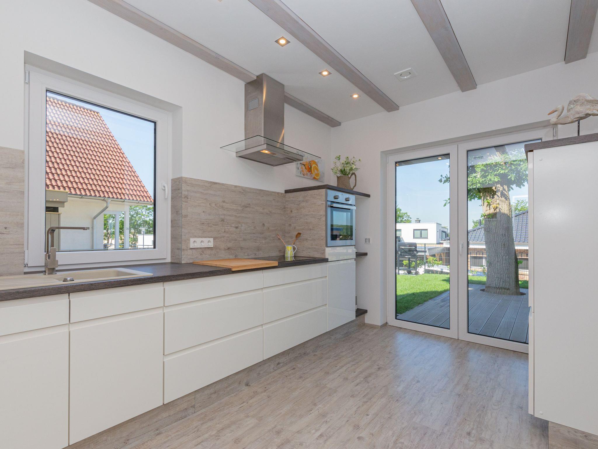 Die gemütlich eingerichtete Nichtraucher-Ferienwohnung Südstrand mit ca. 75 qm bietet Ihnen ausreichend Platz für max. 3 Erwachsene + 1 Kleinkind bis 3 Jahre im Kinderreisebett. Von dem großzügigen, lichtdurchfluteten Wohn- und Essbereich mit großen bodentiefen Fensterelementen werden Sie begeistert sein. Im Wohnbereich können Sie es sich auf einer gemütlichen Eckcouch (Aufbettungsmöglichkeit 3.Person/ 1,40m x 2,00m) oder einem Ohrensessel bequem machen. Zwei dimmbare Leseleuchten helfen beim Lesen eines spannenden Buches. Auf dem 65 Zoll Smart-TV in Full-HD- Qualität können Sie Ihre Lieblingssendungen anschauen oder im DAB-Radio hören. Auf einen kostenfreien Internetanschluss (WLAN) müssen Sie in Ihrem Urlaub nicht verzichten. Ein Kaminofen und bereitgestelltes Brennholz sorgen für Ihre Behaglichkeit an kühleren Tagen. Abgerundet wird der Wohnbereich durch einen Couchtisch sowie ein TV-Board mit Stauraum. Vom Wohn- und Küchenbereich gelangen Sie auf eine von 2 bestuhlten Terrassen (Süd/Ost und Ost/Süd) mit Sonnenschirm, Sonnenliegen, einem Grill und einen feststehenden Wäscheständer. Die moderne Küchenzeile, angrenzend zum Wohnbereich bietet Ihnen einen Kühl- und Gefrierschrank, ein Cerankochfeld, einen Backofen, einen Geschirrspüler, einen Espressokocher, eine Kaffeemaschine, eine Dolce Gusto Maschine, einen Toaster, einen Handmixer, einen Stabmixer sowie weitere alltägliche Küchenhelfer, mit denen das Zubereiten Ihres Lieblingsgerichtes ganz einfach und schnell möglich ist. Abgerundet wird diese durch einen runden Esstisch. Das Schlafzimmer verfügt über ein großes Doppelbett in Komforthöhe (2,00m x 2,00m), Nachttischablagen mit Leseleuchten, verstellbare Lattenroste, einen Safe, einen Kleiderschrank sowie einen Flachbild-TV (48 Zoll). Sämtliche Räumlichkeiten sind mit elektrischen Rollläden sowie Insektenschutzgitter (Wohnbereich/Schlafbereich) versehen. Das hochwertige Tageslichtbad ist ausgestattet mit einer bodentiefen Echtglasdusche mit Regenfunktion, beheizbarem Handtuchtrockner, einen Waschtisch mit großem Wandspiegel, einen Kosmetikspiegel, einem WC und einem Fön. Im Außenbereich finden Sie Ruhe und Abgeschlossenheit in einer Sauna. Ein zusätzlicher Abstellraum bietet Platz für Ihre Koffer, wo Sie unteranderem, aber auch diverse Reinigungsutensilien und einen Staubsauger finden. Für unsere kleinen Gäste steht ein Kinderreisebett (ohne Matratze) und ein Hochstuhl inklusive bereit. Haustiere sind nicht erlaubt. Ihre Fahrräder können Sie in einem verschließbaren Fahrradschuppen unterstellen, kostenfrei laden und sicher an einem Stahlbügel anschließen. Zwei PKW-Stellplätze befinden sich direkt am Haus. Die Erstausstattung eines Wäschepaketes (komplette Bettwäsche, 1 Duschhandtuch, 2 kleine Handtücher) können Sie bis 14 Tage vor der Anreise gegen einen Aufpreis dazu buchen oder durch eigenes Ergänzen. Ab 2 gebuchten Paketen erhalten Sie einmalig 1 Geschirrtuch und einen Duschvorleger dazu.