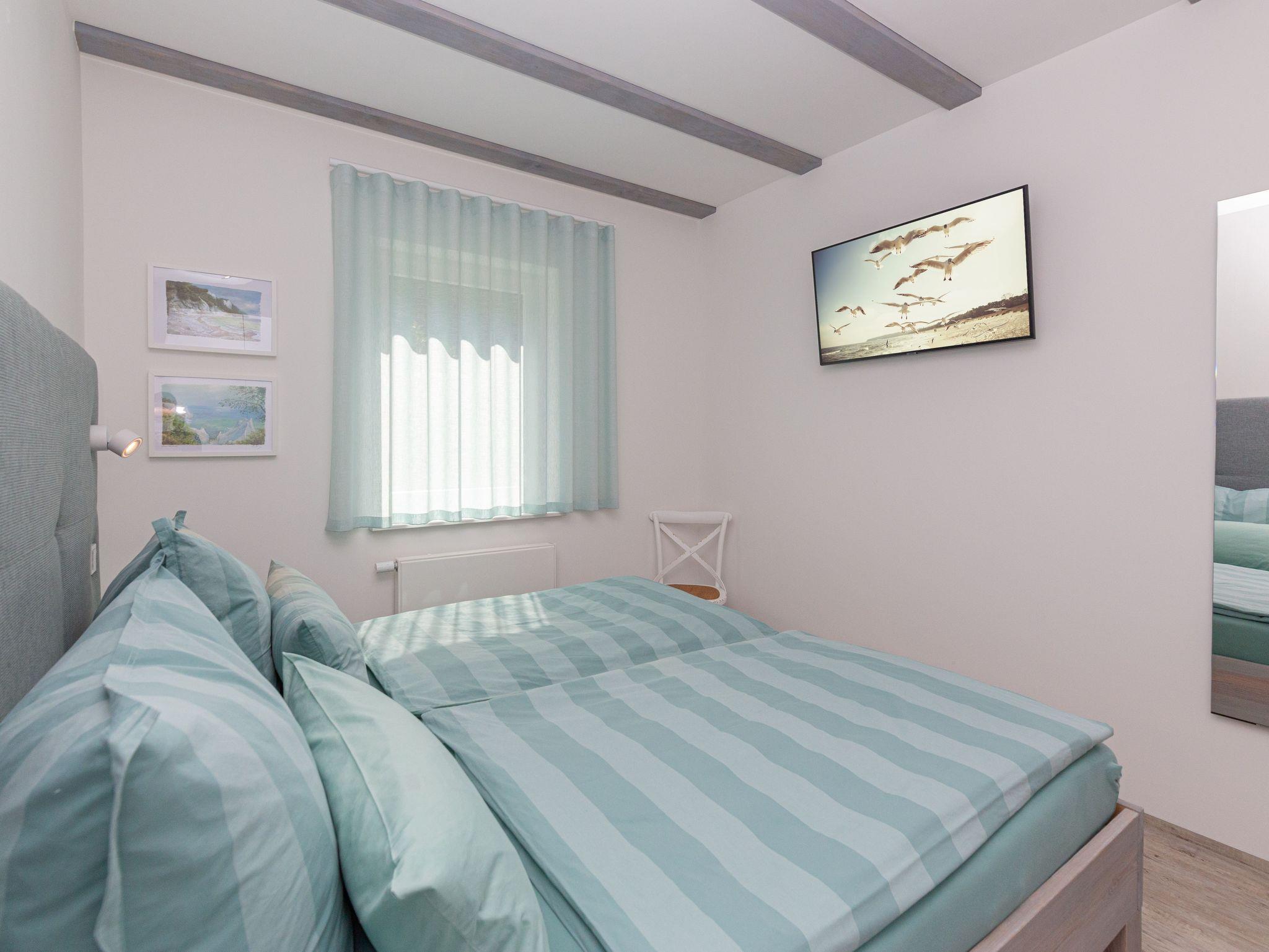 Herzlich Willkommen in der Ferienwohnung Südstrand im Ostseebad Sellin. Die lichtdurchflutete, komfortable Wohnung im Erdgeschoss mit Terrasse, Liegewiese, Kamin und Sauna ist ebenerdig, stufenfrei erreichbar und bietet sämtliche Annehmlichkeiten für Zweisamkeit und Familie. In einer Sackgasse gelegen, ohne Durchgangsverkehr und Fenster mit Dreifachverglasung herrscht angenehme Ruhe und bietet damit Erholung pur. Die Wohnung befindet sich nur ca.300 m vom feinen kilometerlangen Südstrand entfernt und in unmittelbarer Nähe zum Hochuferwanderweg. Ein Bistro mit frischem Fisch, Räucherfisch und anderen auch warmen Gerichten und kalten Getränken erwartet Sie in Strandnähe sowie in der Wilhelmstrasse mit den einzigartigen Villen in Bäderarchitektur. Am Ende der Wilhelmstrasse liegt unterhalb der Steilküste die wunderschöne Seebrücke. Sie erwartet ein atemberaubender Weitblick über den Strand auf die Ostsee. Unsere Bäderbahn fährt alle 20 Minuten, mit Kurkarte kostenfrei, und verbindet den Ort mit dem Badestrand. Im Ostseebad können Sie spannende Reitausflüge, Wanderungen und Sichtungen von Fledermäusen buchen. Der überwiegend aus Buchen bestehende Hochwald lädt zum Wandern oder Touren mit dem Fahrrad ein.
