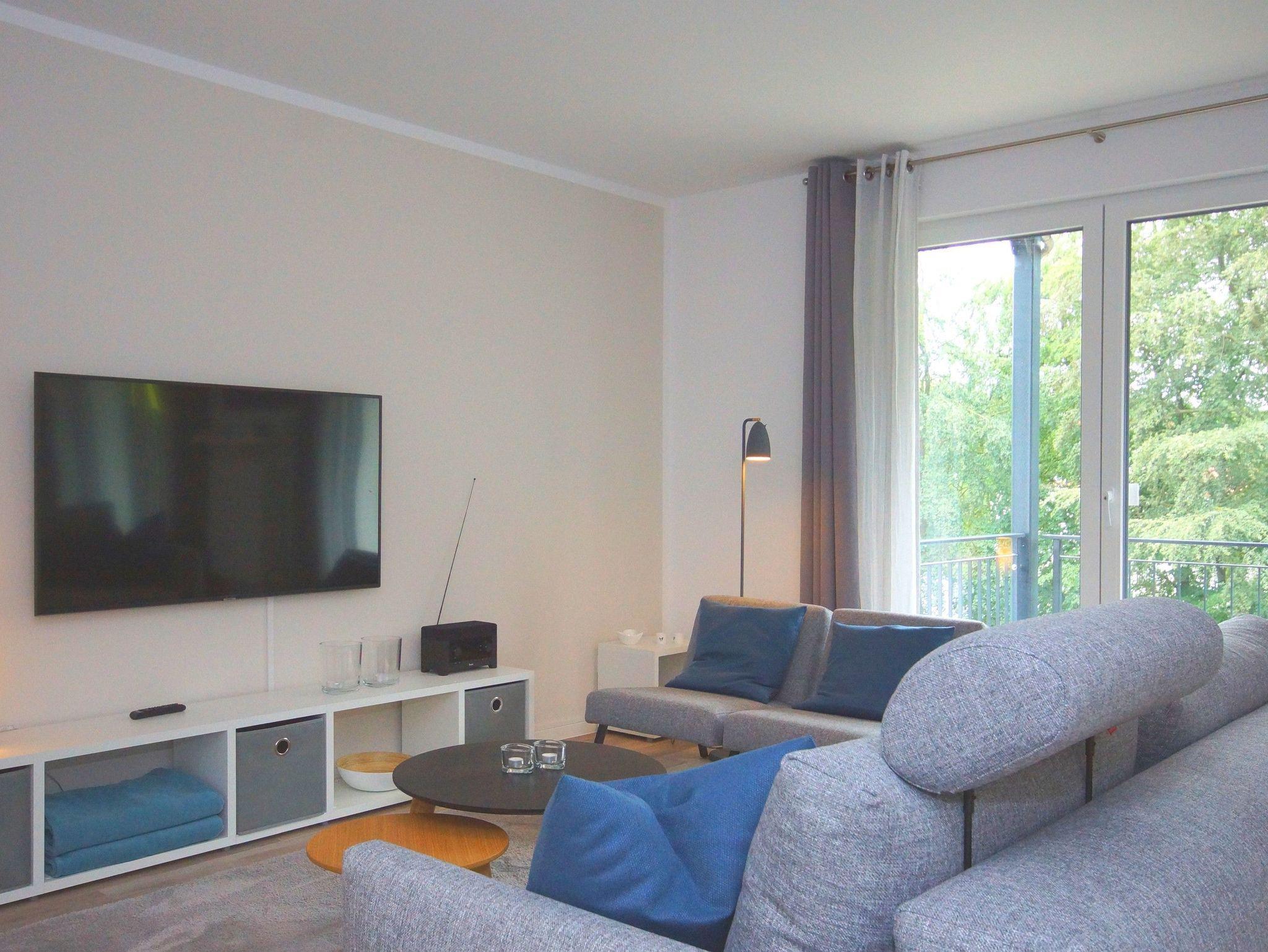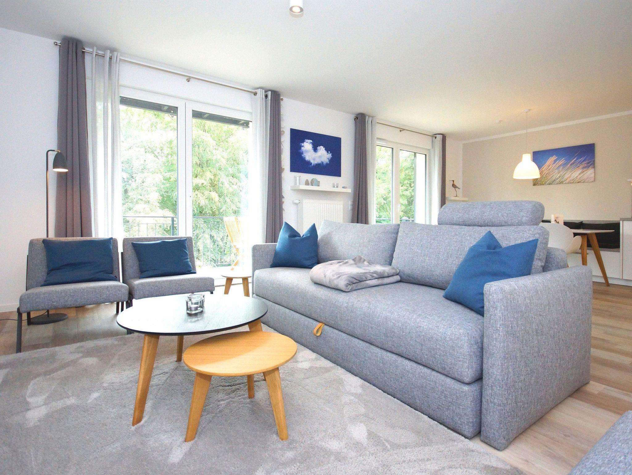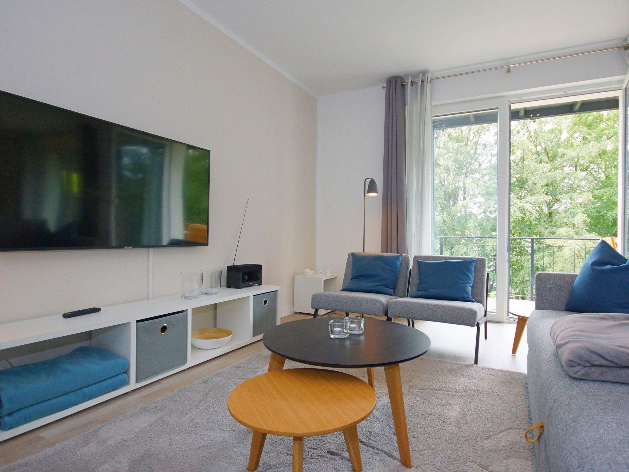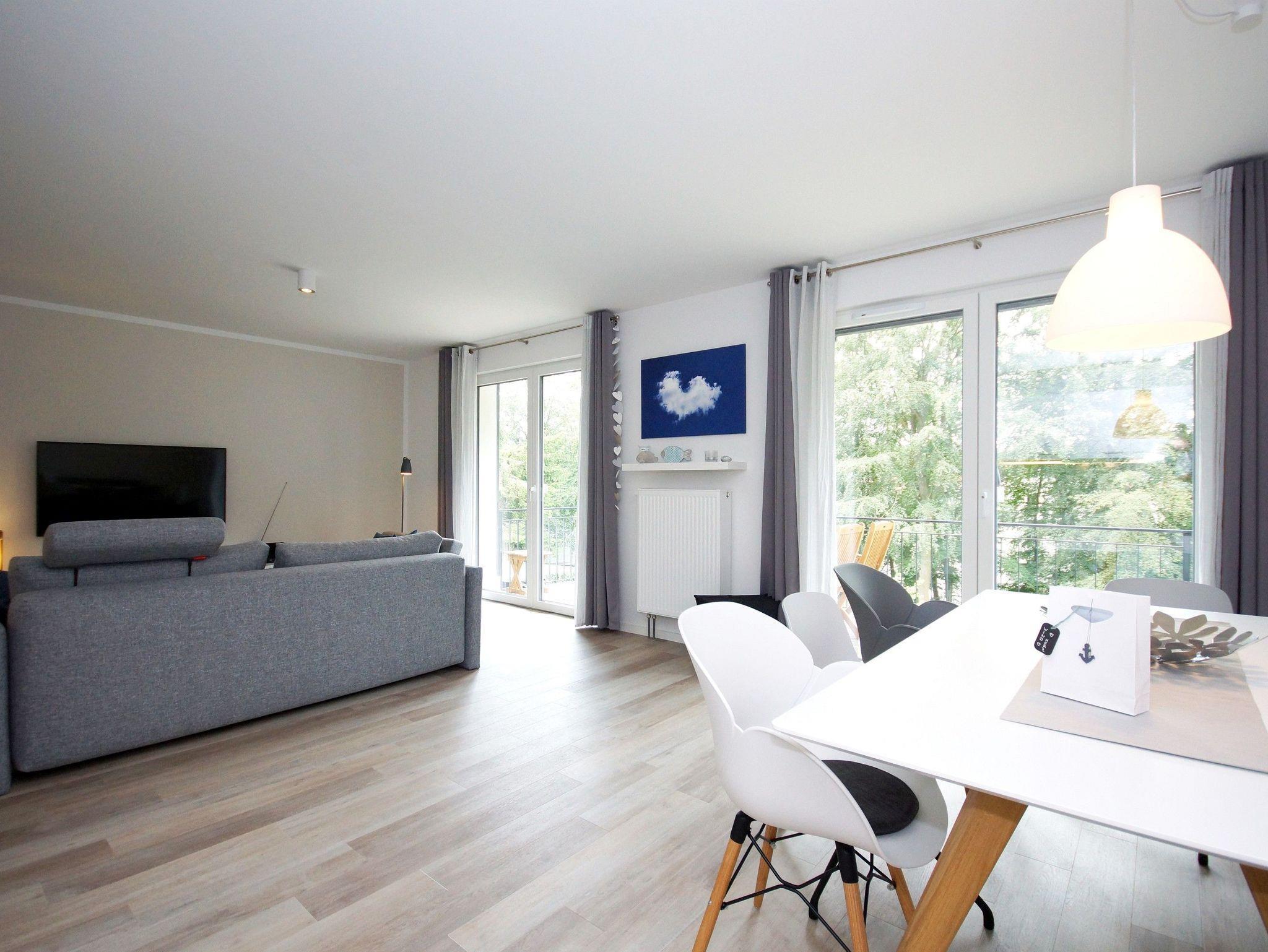 Die Ferienwohnung Windherz in Sellin besticht durch skandinavisches Design, Sauna, Balkon und E-Ladestationen für Autos und E-Bikes.