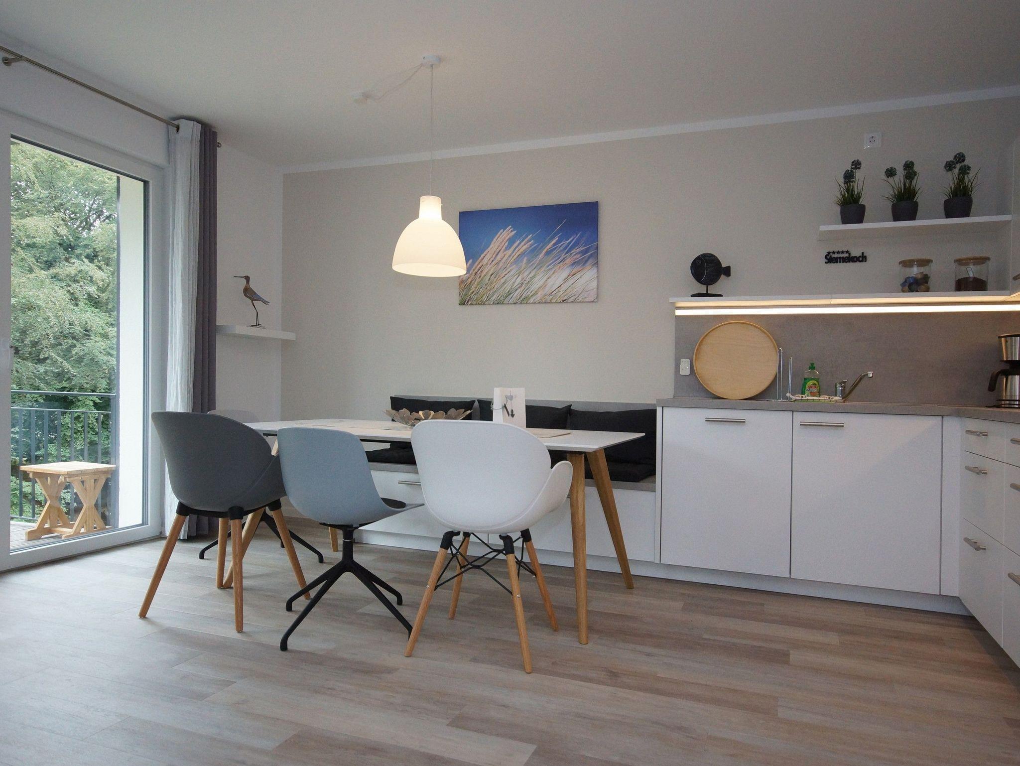 Im 1. Obergeschoss des Hauses Waldidyll empfängt Sie die Ferienwohnung Windherz in skandinavischem Design. Lichtdurchflutete Räume laden zum Entspannen ein.