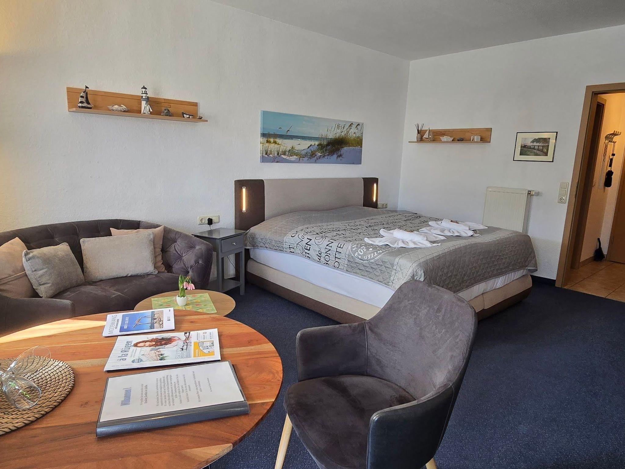 • Wohn-Schlafraum mit Boxspringbett und einem 2. Zimmer mit Schlafcouch