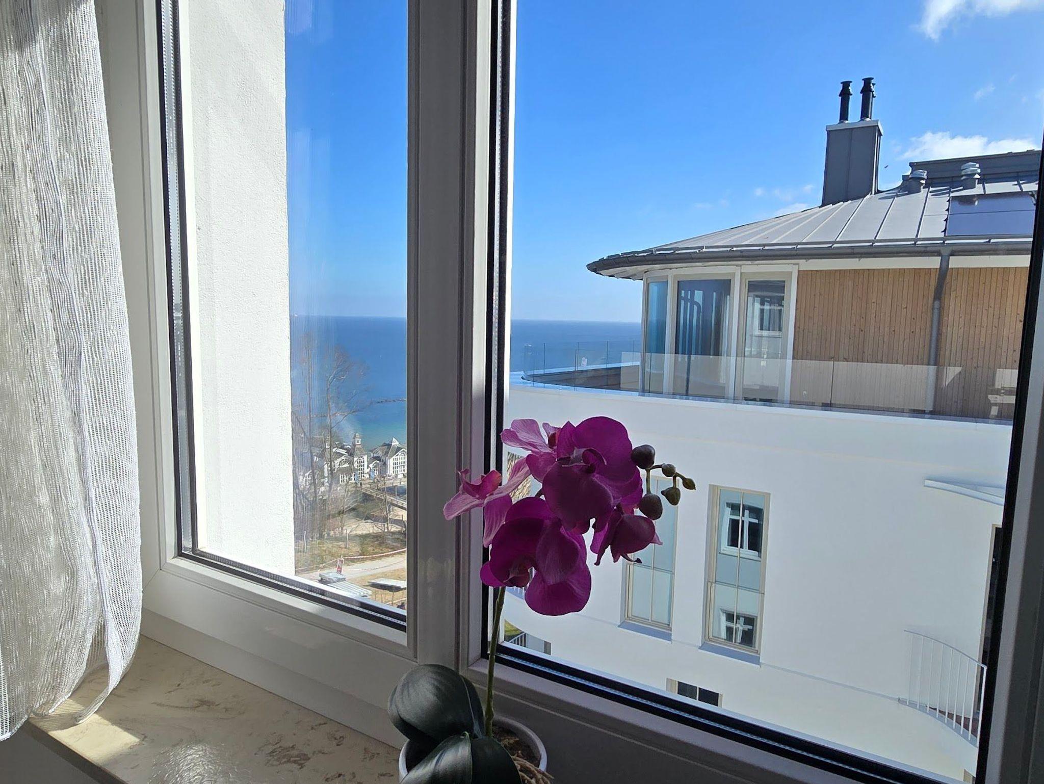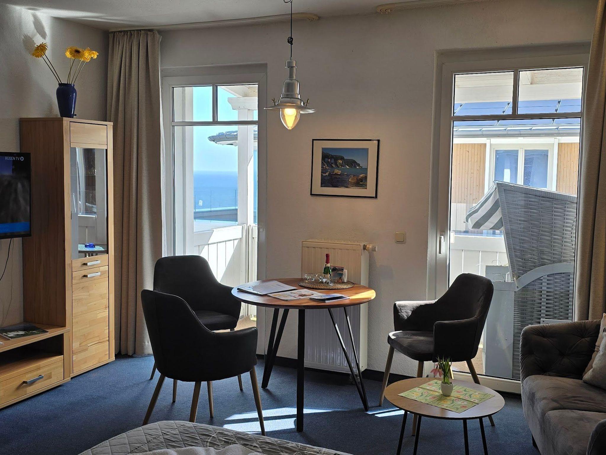 Modernes 2-Zimmer-Apartment mit Balkon und seitlichem Ostseeblick in Sellin, nur wenige Meter vom Strand entfernt.
