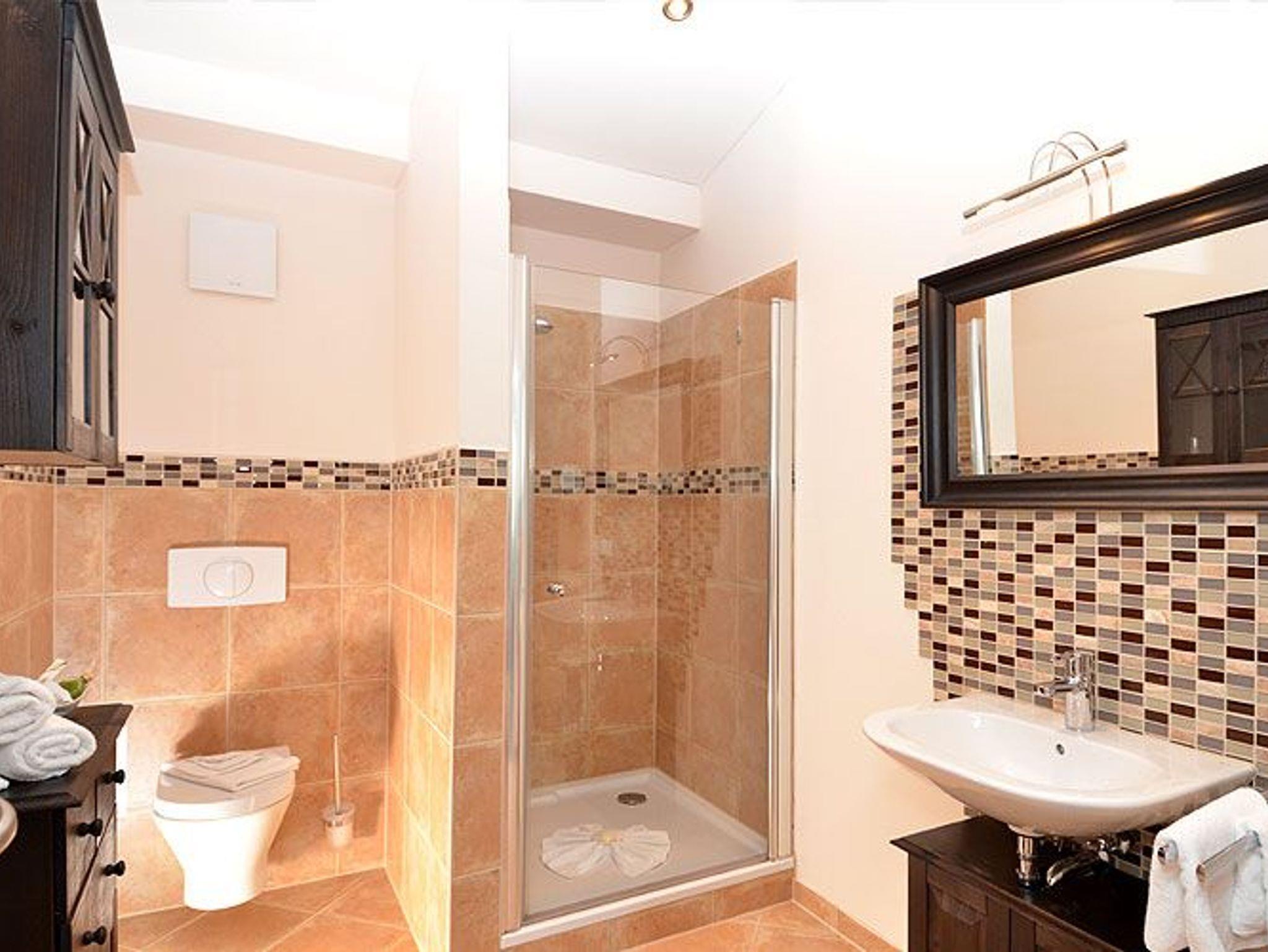 Es stehen Ihnen ein modernes Duschbad mit WC, Waschbecken, Handtuchheizung und Fußbodenheizung sowie ein Gäste WC zur Verfügung.