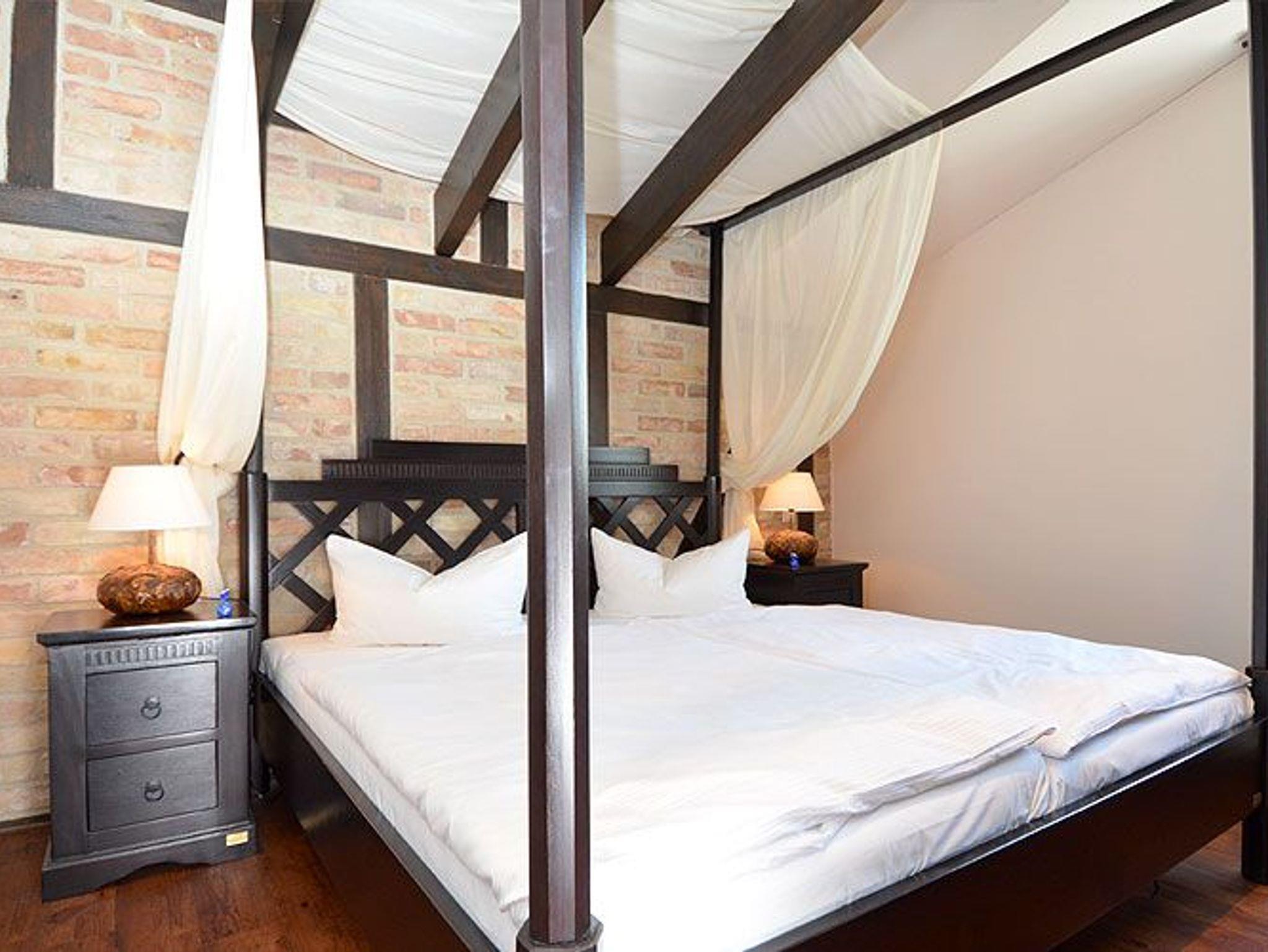 Das Appartement verfügt über zwei separate Schlafzimmer in stilgerechter Einrichtung und Doppelbetten in 1,80 x 2,00 m Größe. In einem der Schlafzimmer wartet ein Himmelbett sowie ein zweiter Fernseher auf Sie. Kinderreisebettchen können nicht in den Schlafzimmern untergebracht werden!