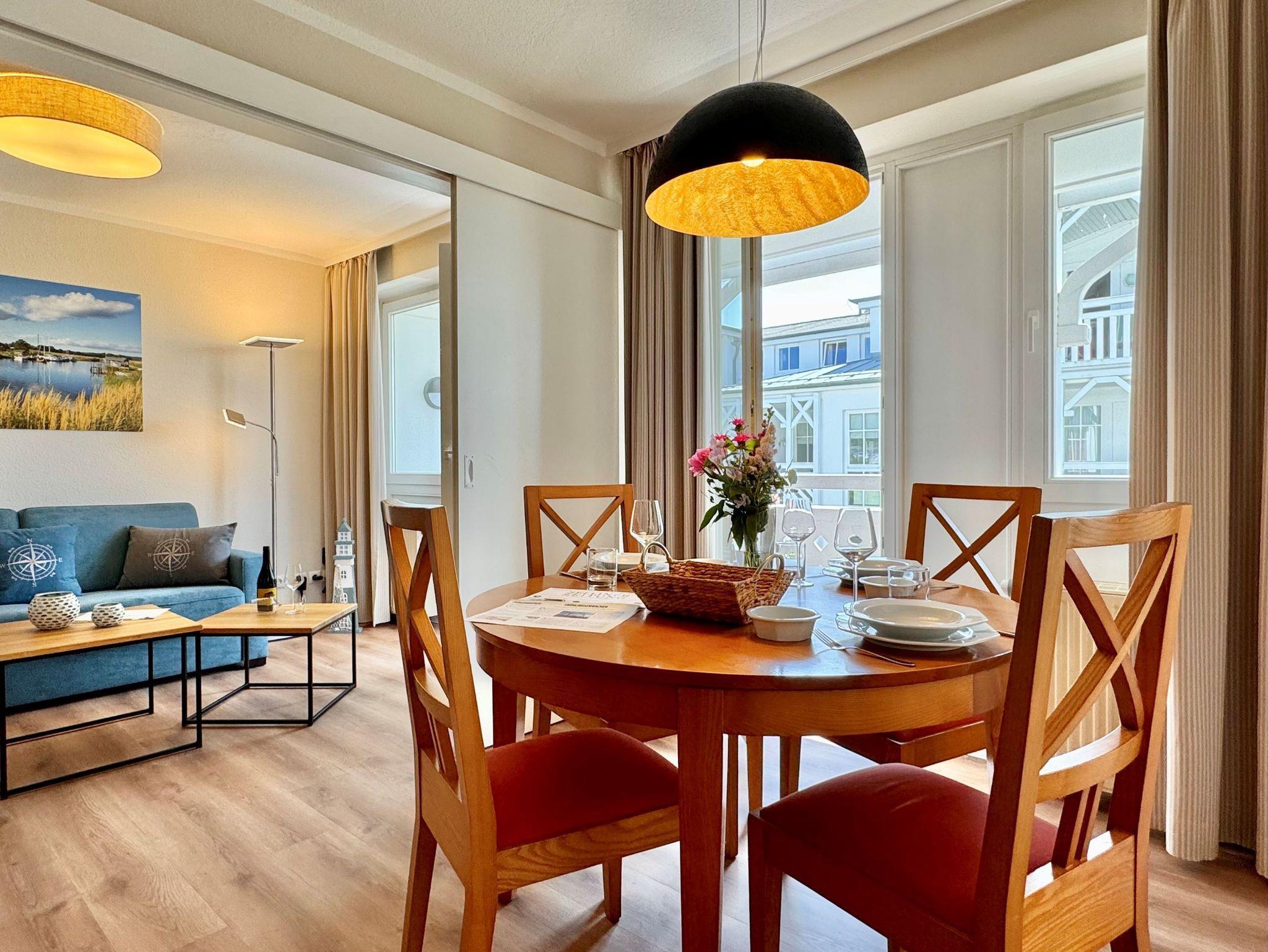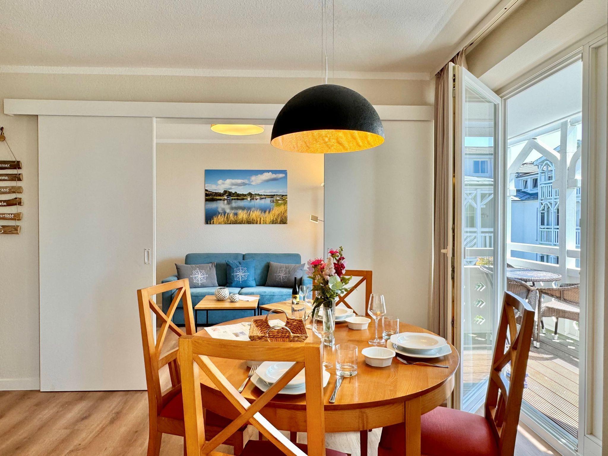 Moderne Ferienwohnung im Seepark Sellin mit Balkon, WLAN und kostenfreiem Schwimmbadzugang.