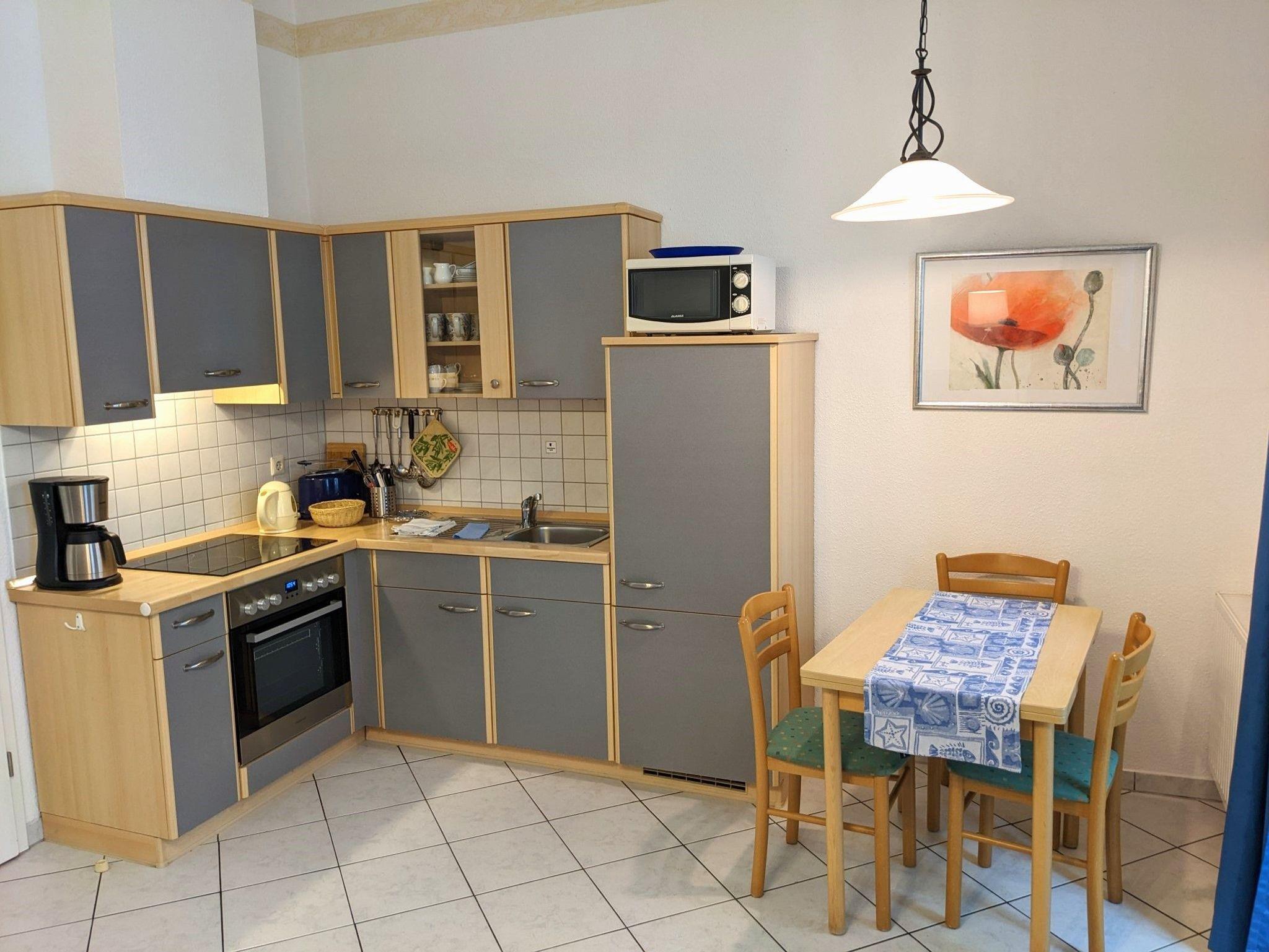 • offene Küche mit Essecke, E-Herd, Backofen, Kühlschrank, Mikrowelle uvm.