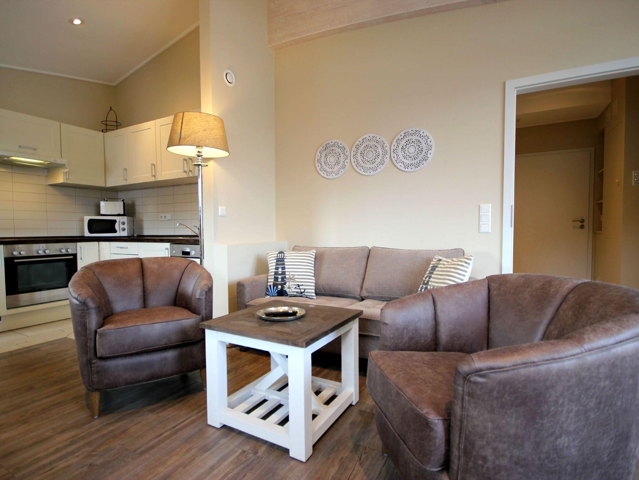 Ihre 2-Zimmer Ferienwohnung 65RB11 Sonne befindet sich im 2. Obergeschoss und ist ca. 50 qm groß. Die Nichtraucherwohnung verfügt über einen Balkon in Richtung Osten und ist für bis zu 2 Personen gut geeignet. Neben dem gemütlichen Wohnbereich mit Zugang zum Balkon, gehört eine Sitzecke, ein Essbereich, Flachbild TV sowie WLAN. Im Schlafzimmer erwartet Sie ein Doppelbett, ein zusätzlicher TV, ein Kleiderschrank sowie ein weiterer Zugang zum Balkon. Zudem können Sie eine voll ausgestattete und im Wohnbereich integrierte Küchenzeile mit Geschirrspüler, Backofen, Wasserkocher, Toaster, Kaffeemaschine sowie umfangreiches Küchengeschirr nutzen. Das moderne Badezimmer erwartet Sie mit Waschtisch, WC und Dusche. Einen Parkplatz sowie eine Fahrradunterstellmöglichkeit befinden sich direkt am Objekt.