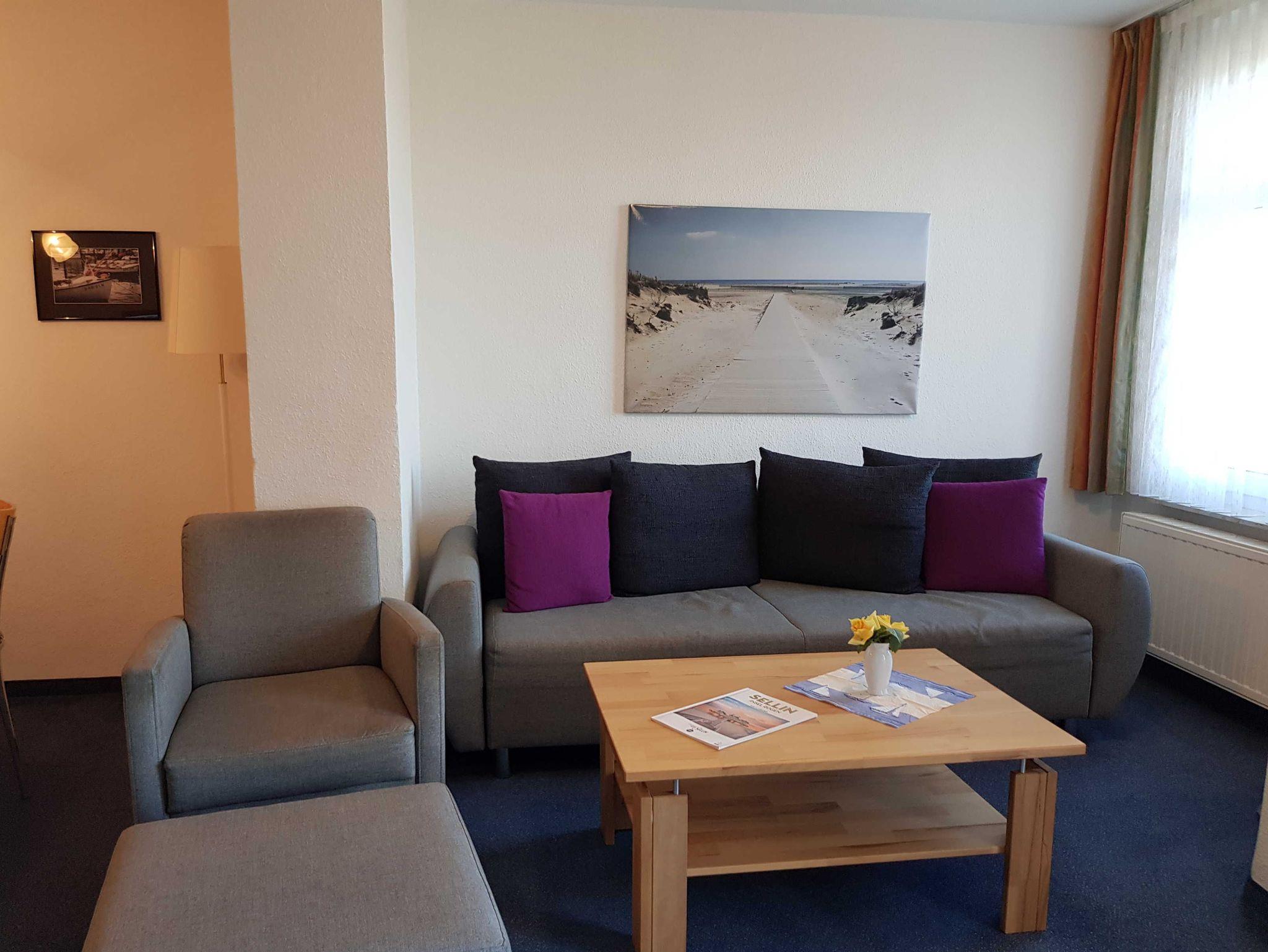 Sie haben eine gute Wahl getroffen. Die Residenz Seeblick ist ein modernes, im Bäderstil saniertes Appartementhaus direkt an der Ostsee. Es steht Ihnen ein 3 Zimmer Apartment mit Balkon in bevorzugter Lage zur Verfügung. Nur wenige Meter zum Strand von Sellin und zur Seebrücke, dem Wahrzeichen von Sellin sprechen für sich. Ihre Wohnung errreichen Sie barrierefrei mit einen Glasaufzug . Ein freier Wireless Lan Internetzugang steht zur Verfügung . Die Appartements sind modern ausgestattet und verfügen über eine gut bestückte Küchenzeile mit Geschirrspüler. Die Zimmer verfügen über Kabel-TV mit DVD Player und Stereoanlage mit CD Spieler. Unterstellmöglichkeiten für Ihre Fahrräder befinden sich im und am Haus . Für jede Wohnung steht ein Parkplatz zur verfügung. Alle Wohnungen haben einen möbilierten Balkon. Eine Sauna mit Ruheliegen und Finessraum sowie Waschmaschine und Trockner stehen Ihnen in den Gemeinschaftsräumen gegen Gebühr zur Verfügung.