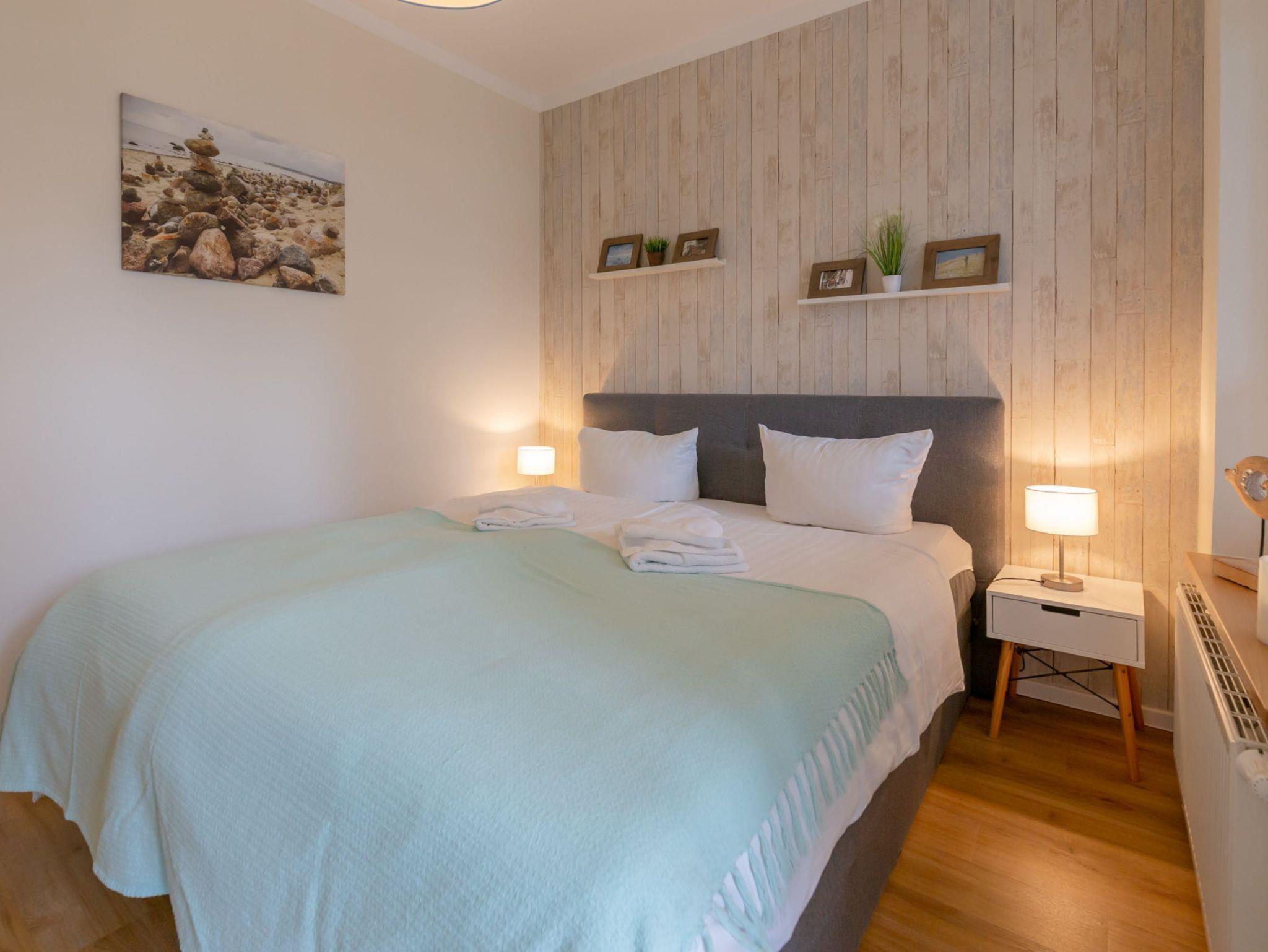 Das Schlafzimmer ist mit einem großen Doppelbett und einem Kleiderschrank ausgestattet. Von hier aus, sowie auch über das Wohnzimmer, erreichen Sie den sonnigen Wintergarten.
