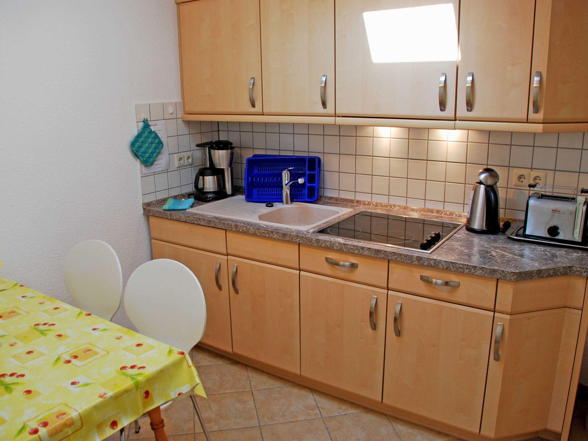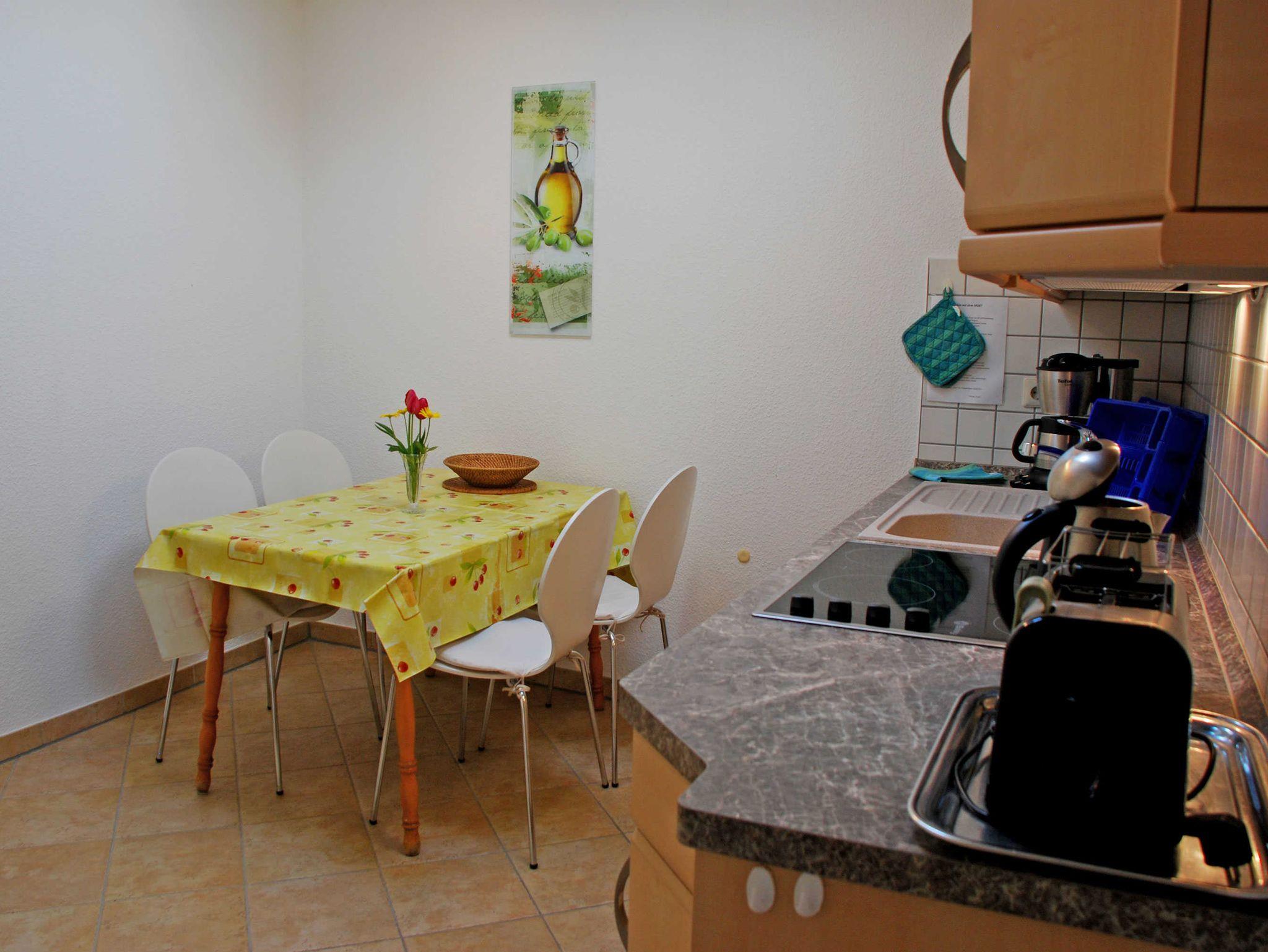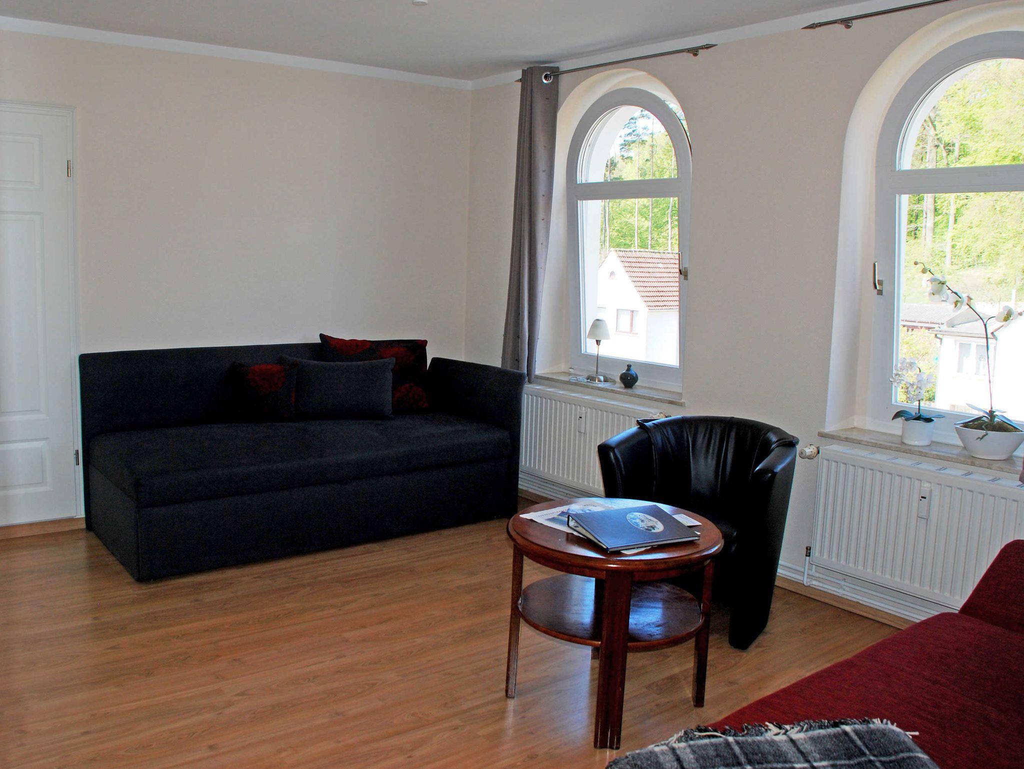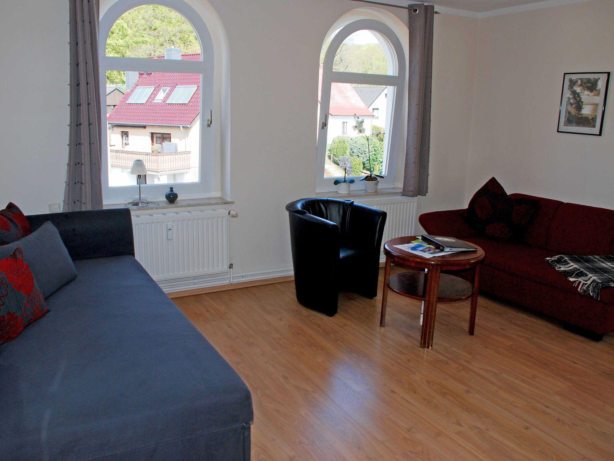 Unsere Ferienwohnung Granitz befindet sich im 2. Obergeschoss, verfügt über einen separaten Eingang, WLAN-Internet und ist ca. 50 qm groß. Sie bietet Platz für maximal 4 Gäste, wurde modern und liebevoll eingerichtet. Im Wohnraum befindet sich eine bequeme Sitzcouch mit Beistelltisch sowie ein Flachbild-TV-Gerät. Eine zweite Couch kann hier bei Bedarf für 2 Gäste aufgebettet werden. Die separate Küche ist mit einem 4-Zonen-Ceranfeld-Herd, Abzugshaube, Wasserkocher, Kaffeemaschine, Toaster und Kühlschrank komplett ausgestattet. Hier steht auch ein Esstisch mit Sitzgelegenheiten.