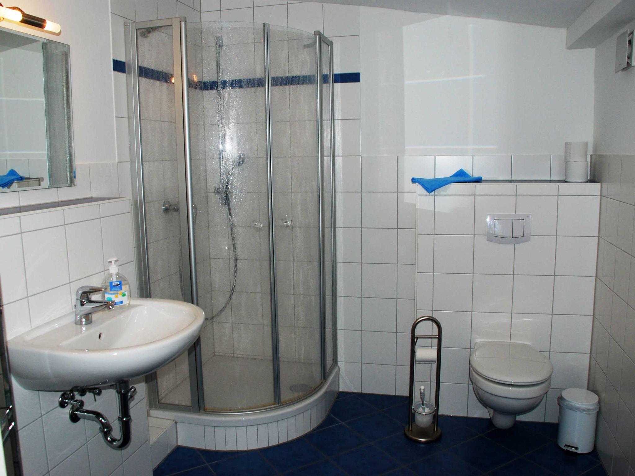 Das moderne Bad ist mit Dusche, WC, Haartrockner sowie Waschtisch ausgestattet.
