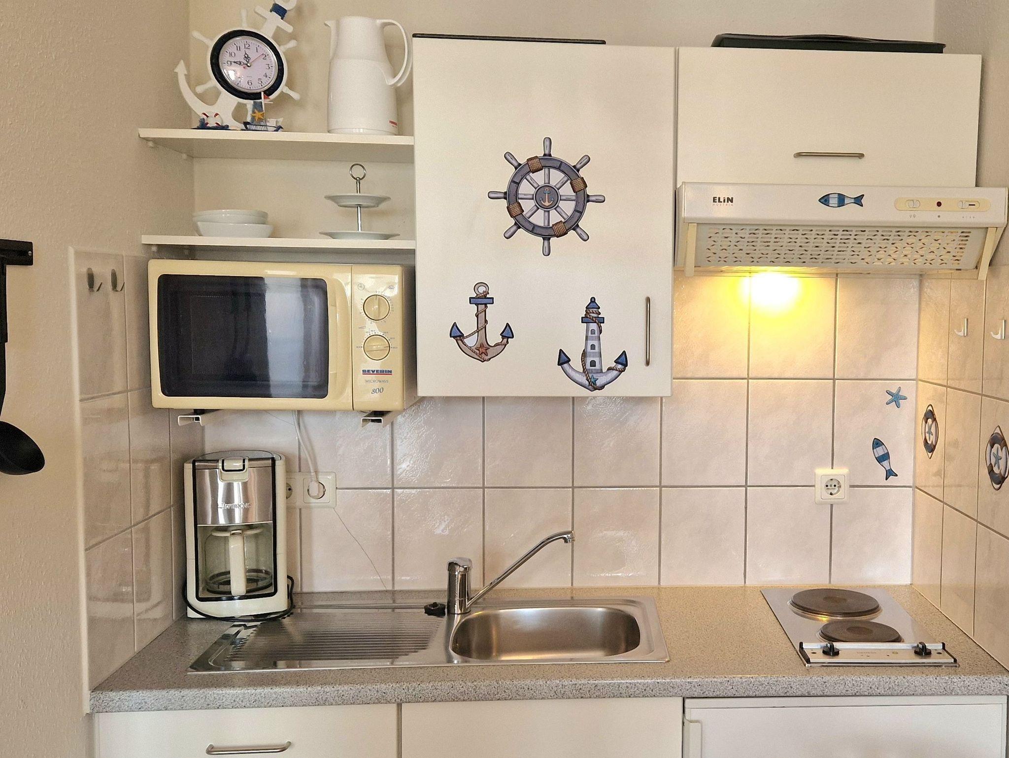 Die Wohnung ist mit kostenfreiem WLAN ausgestattet und die Erstausstattung an Bettwäsche ist im Preis enthalten. Im Schlafzimmer, das durch Verdunklung für einen erholsamen Schlaf sorgt, steht ein Doppelbett zur Verfügung. Im Wohnzimmer gibt es zudem eine Doppelschlafcouch. Das Badezimmer ist mit Dusche, WC, Föhn und Kosmetikspiegel ausgestattet. Die offene Küche verfügt über eine Mikrowelle, Kaffeemaschine und Toaster. Ein Fernseher mit 3 Sky-Sendern rundet die Ausstattung ab. Auf dem Balkon in Nordostlage können Sie den Ausblick und die Sitzgruppe genießen. Rauchen und Haustiere sind in der Nichtraucherwohnung nicht gestattet.
