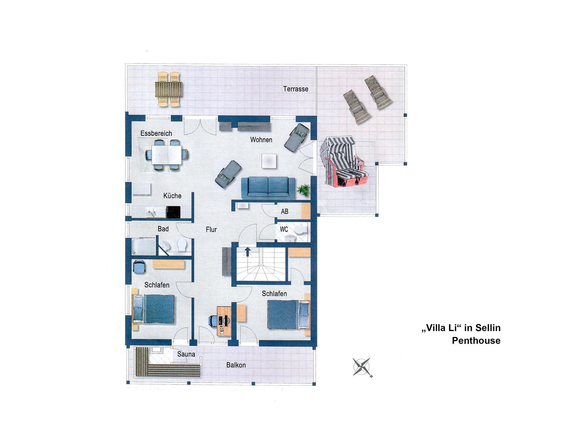 Luxuriöses Penthouse in Sellin mit großer Dachterrasse, Sauna und Tiefgaragenstellplatz für erholsame Urlaubstage.