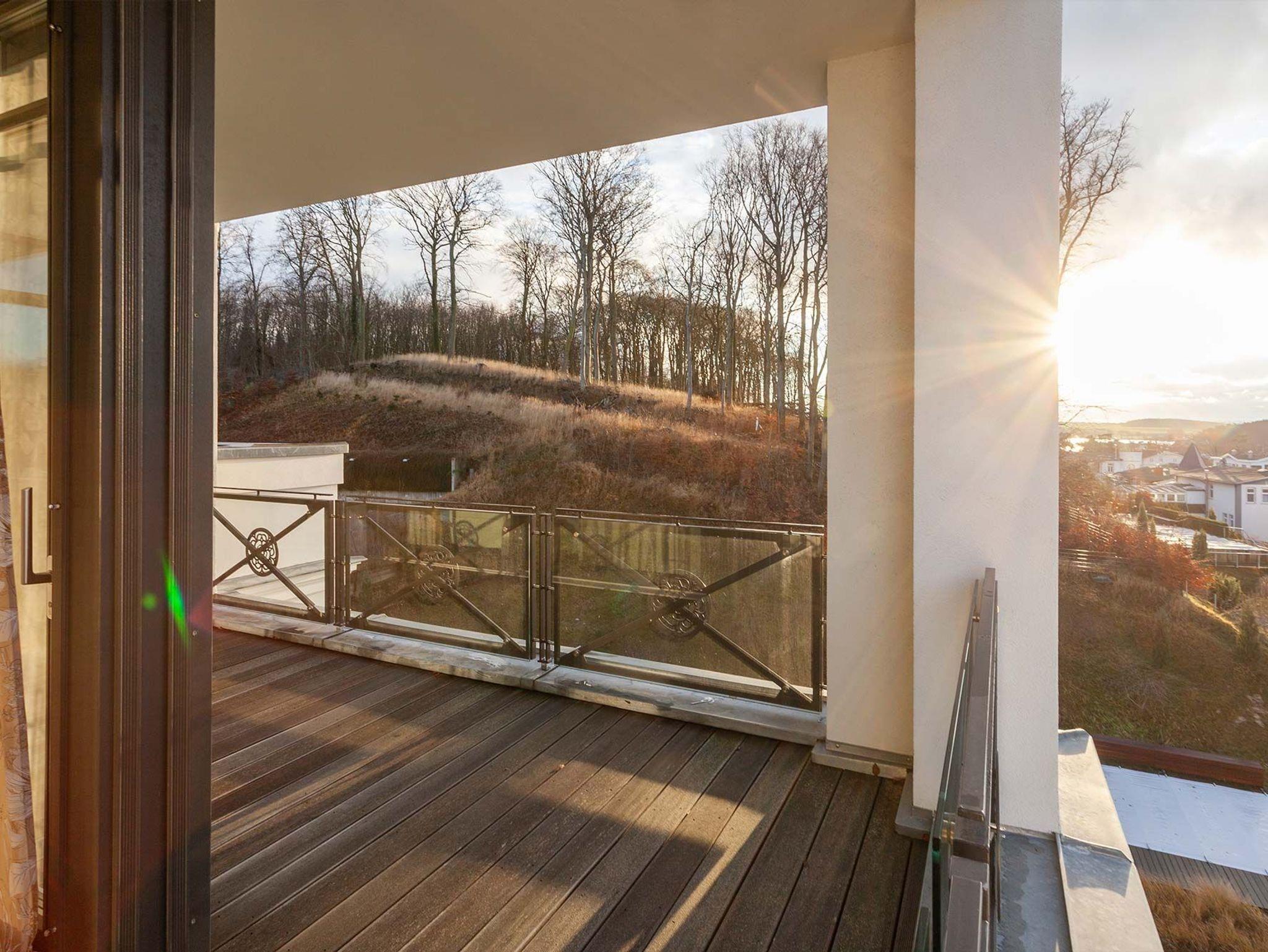 Die große Terrasse lässt Sie schöne Sonnenstunden an der Ostsee genießen. Ebenso ist von dort aus der große Poolbereich zu erkennen, welcher in den Sommermonaten zum ausgiebigen Baden einlädt.