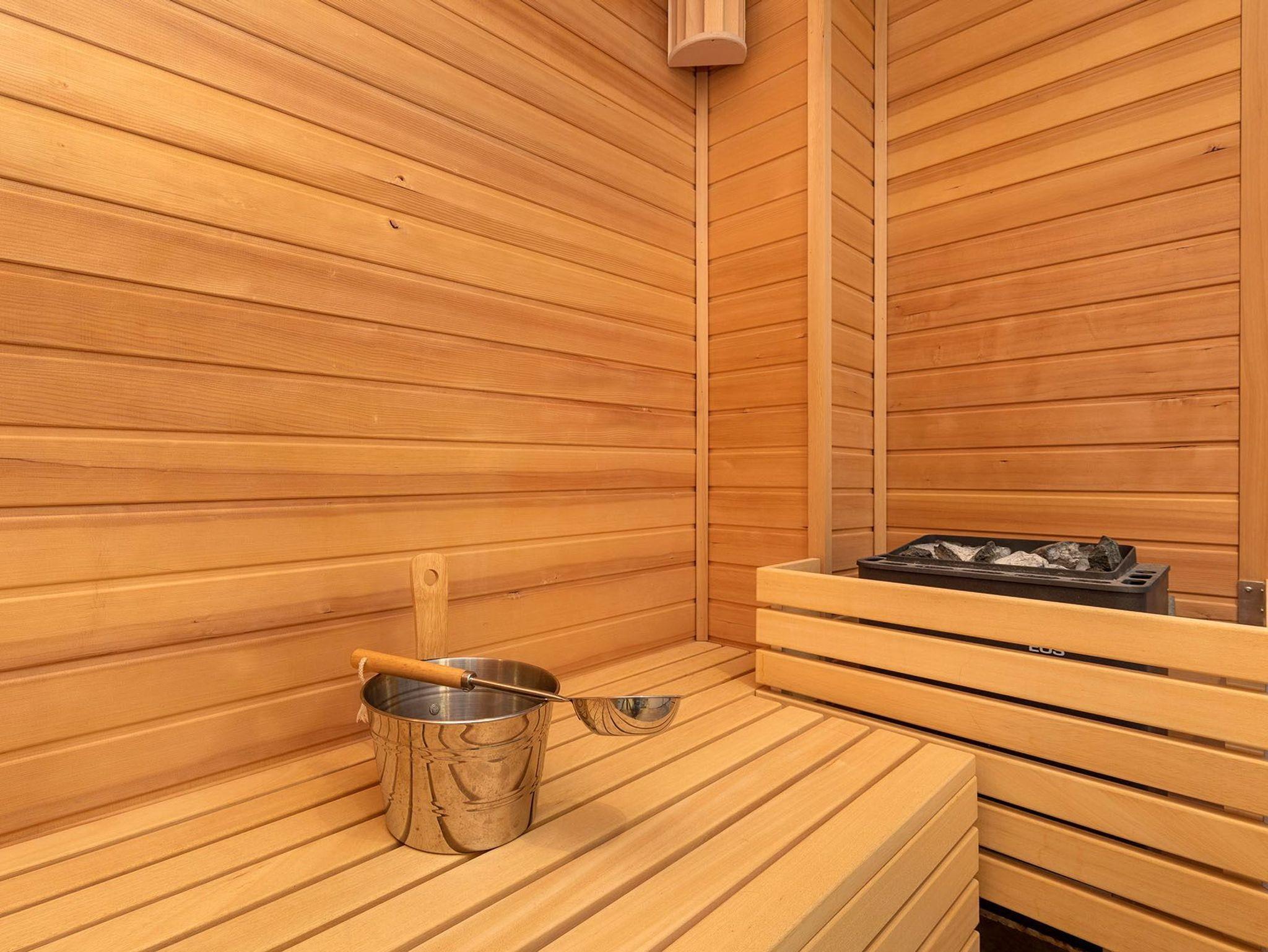 Der Wohn- und Essbereich lädt mit hochwertigen Leder- und Eichenmöbeln, integrierter Designerküche und modernster Unterhaltungselektronik zum gemeinsamen Entspannen ein. Für kuschelige Gemütlichkeit sorgen der Kamin, die Sauna mit Farblicht und die Fußbodenheizung. Auch die beiden Schlafzimmer und das elegante Badezimmer mit seiner ebenerdigen Dusche werden Sie begeistern. Auf der südwestlich ausgerichteten Terrasse stehen Ihnen saisonal bequeme Sitzmöbel und ein BBQ-Grill zur Verfügung.