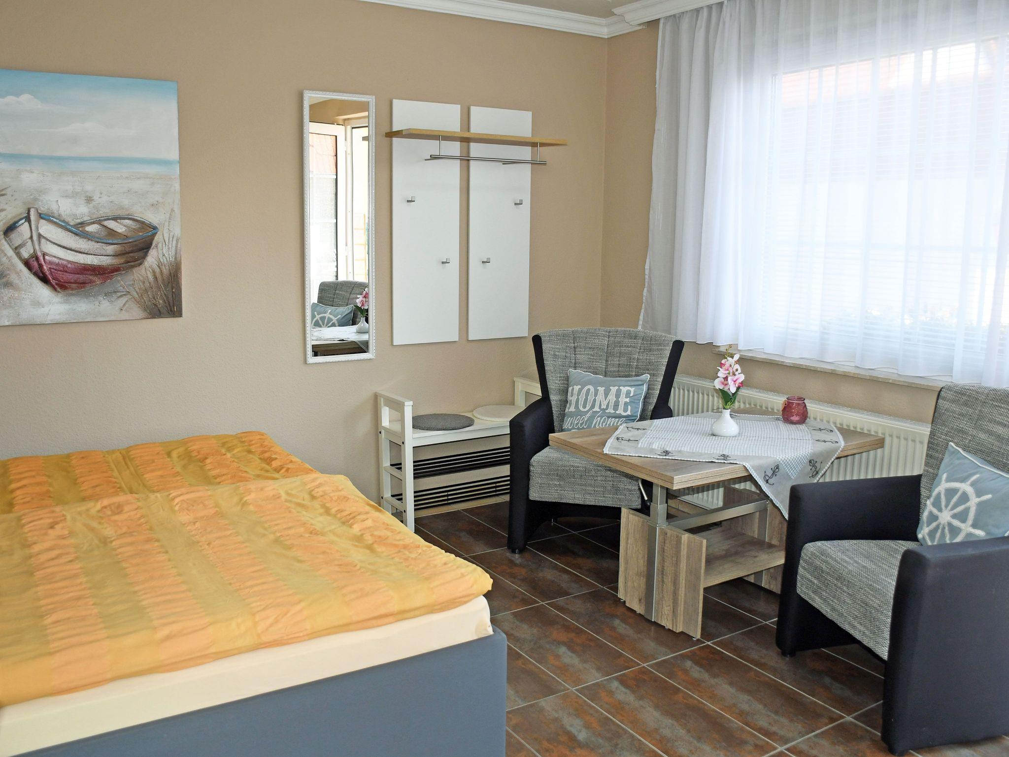 Die Ferienwohnungen Beatrix verfügen über einen kombinierten Wohn- und Schlafraum mit Pantryküche und ein Bad. Im Wohnraum befindet sich ein bequemes Doppelbett, ein Tisch mit Stühlen und ein TV-Gerät. Die kleine Pantryküche ist mit Kühlschrank, Herd, Taoaster, Wasserkocher und Kaffemaschine ausgestattet. Im modernen Bad gibt es eine Dusche, WC und Waschbecken. Bettwäsche wird selbtsverständlich von uns bei Anreise bereitgestellt. Handtücher bitten wir selbst mitzubringen.