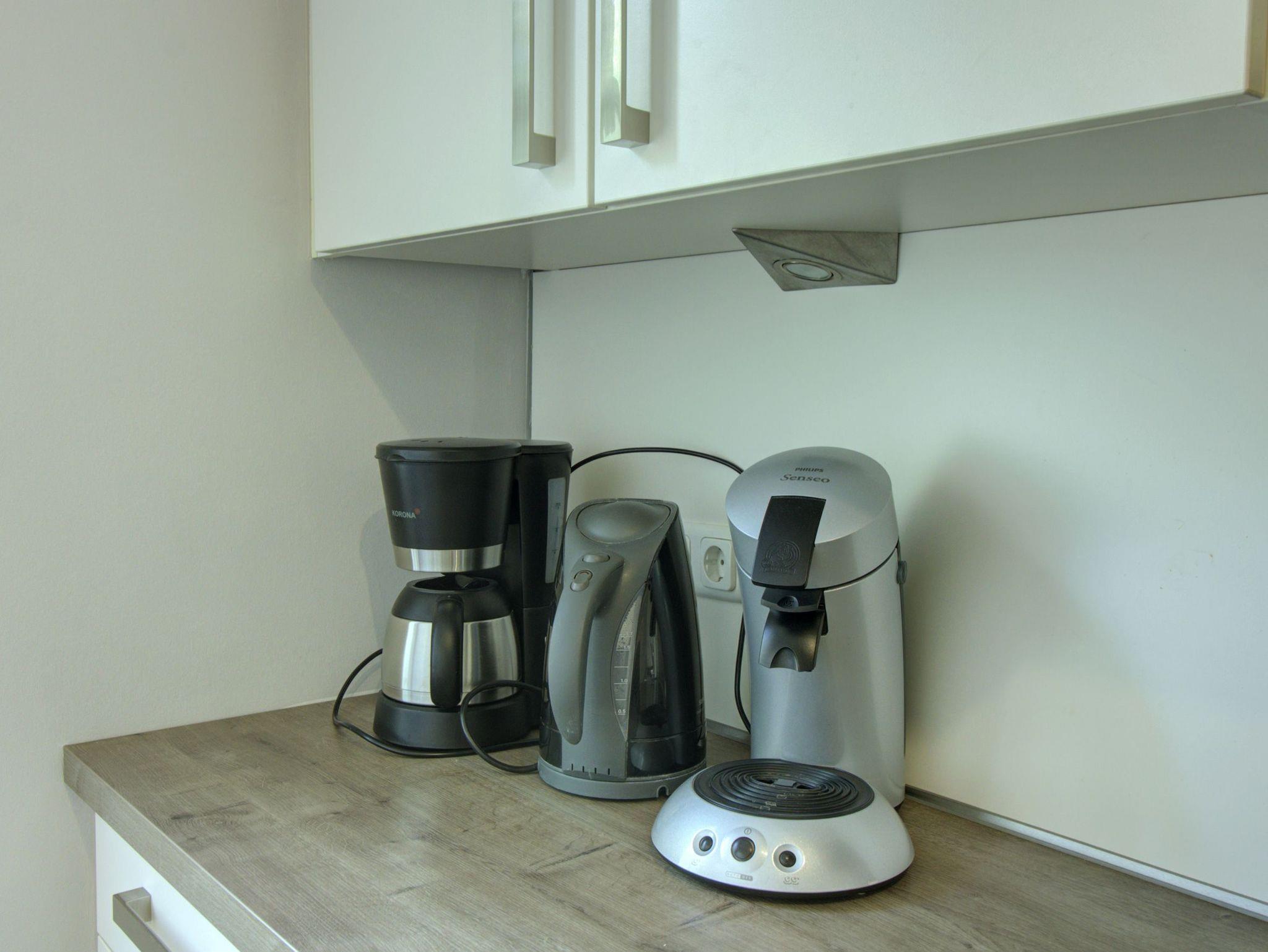 Die moderne Küche bietet Ihnen alles, was Sie für einen kulinarischen Kochabend benötigen; einen Kühlschrank, ein 4-Platten Cerankochfeld, einen Backofen, eine Mikrowelle und allerlei Küchenkleingeräte (Wasserkocher, Kaffeemaschine ...).