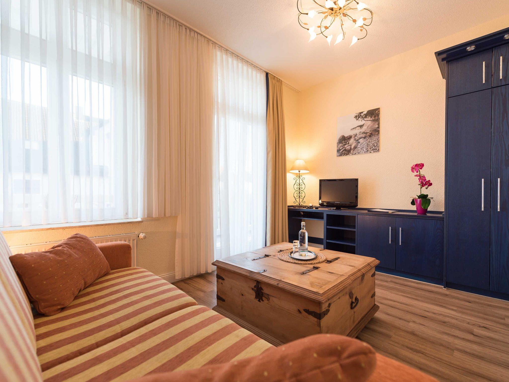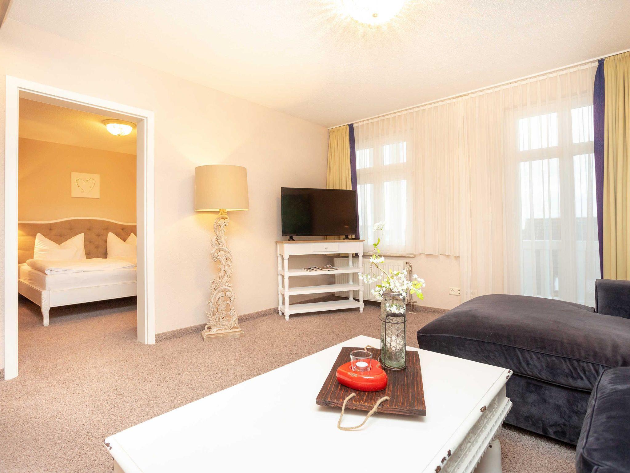 Unsere Suites bestehen aus einem seperaten Wohnzimmer mit Flachbild TV, Telefon, WLAN, Zimmersafe, Nespresso Maschine, Wasserkocher, Sofa mit Schlaffunktion und einem Schlafraum, Bad mit Dusche, entweder mit Balkon oder ohne Balkon.