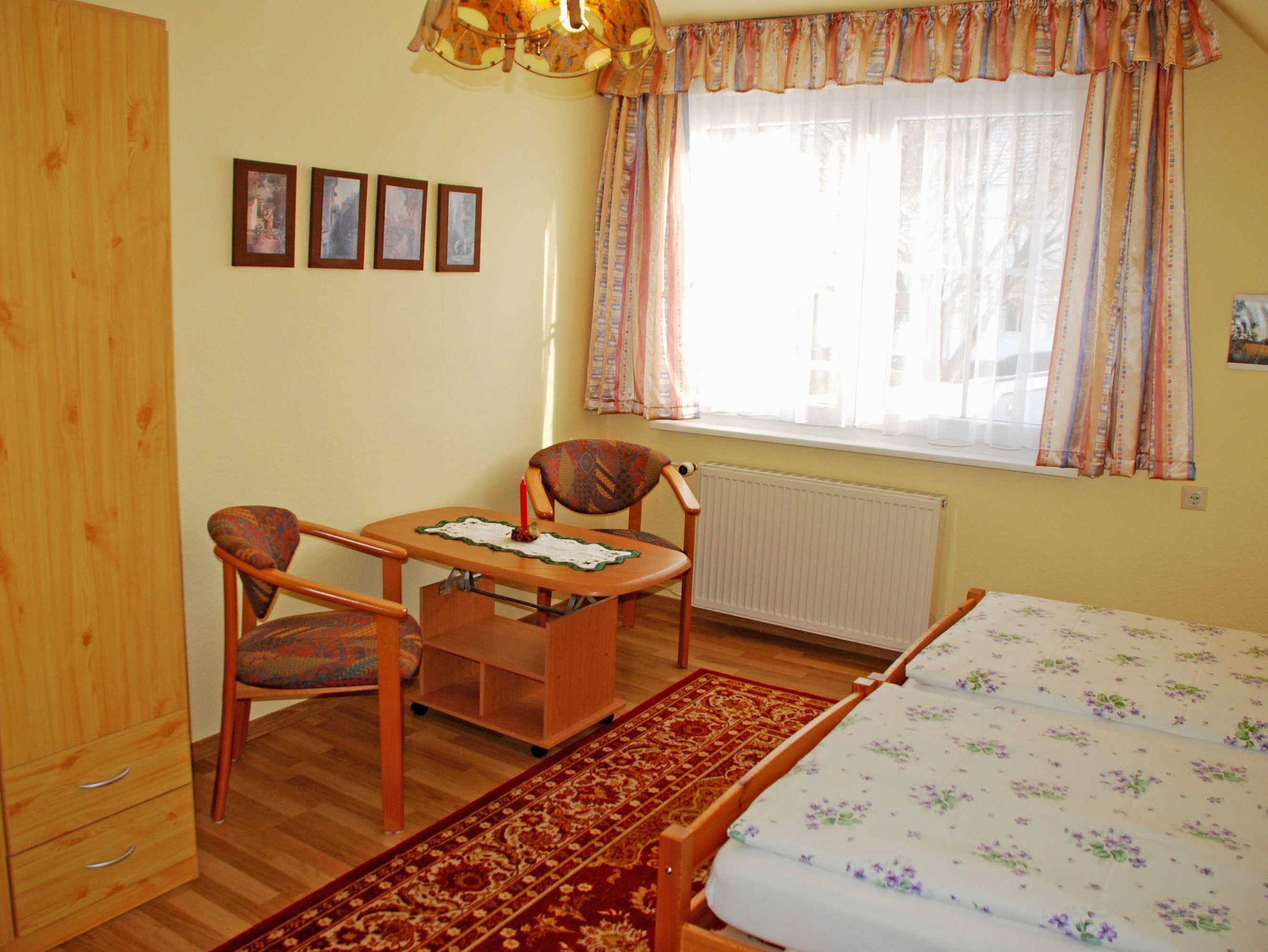 Unser Haus bietet Ihnen die liebevoll eingerichtete Nichtraucher-Ferienwohnung Christine (53 qm, 1 Wohnzimmer, 2 Schlafzimmer, Küche, Dusche/WC, Sitzecke im Garten mit Grillmöglichkeit, max. 6 Gäste).