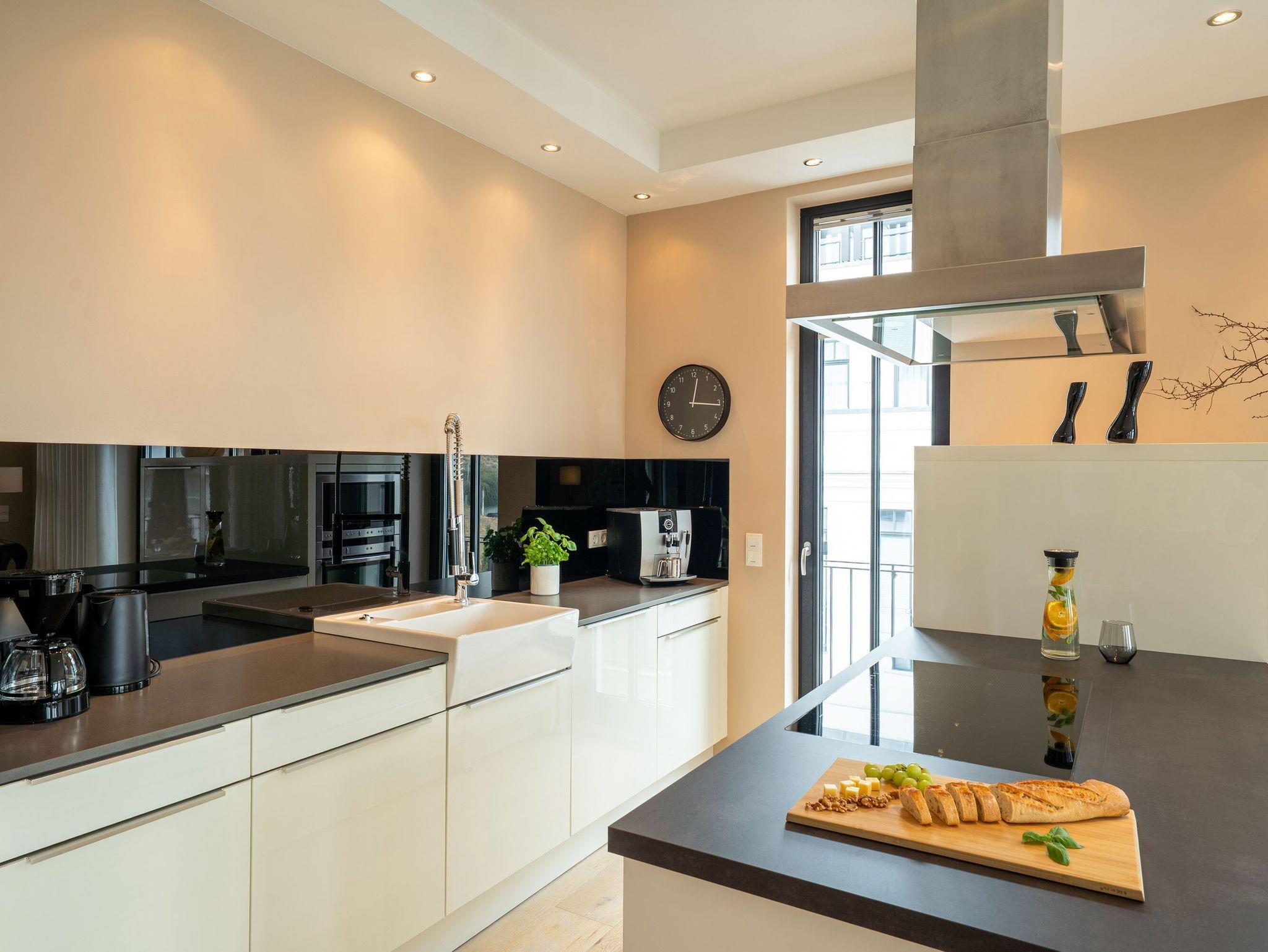 Das gesamte Nichtraucherappartement verfügt über helle Eichendielen bzw. hochwertige Natursteinboden in den Bädern, die durch eine Fußbodenheizung auch in den nicht so warmen Jahreszeiten für eine wohlige Temperierung sorgen. Die mit hochwertigen Geräten ausgestattete Einbauküche mit Induktionsherd, Backofen, Mikrowelle, Geschirrspüler, Kühlschrank, Kaffeemaschine und die vielen kleinen Details sorgen in Ihrem Urlaub auch in diesem Bereich für hohe Zufriedenheit.