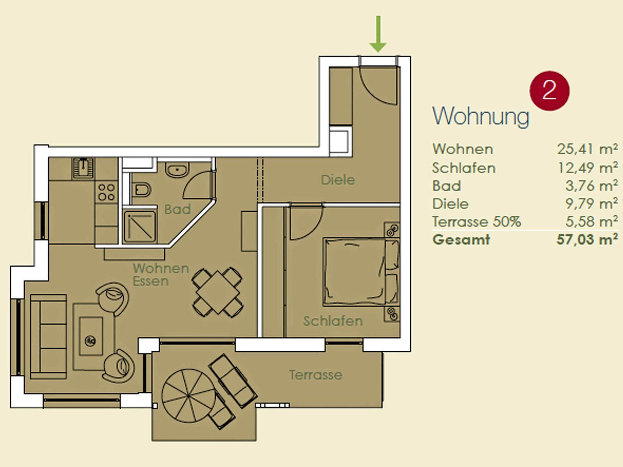 Wohnfläche 57 m²